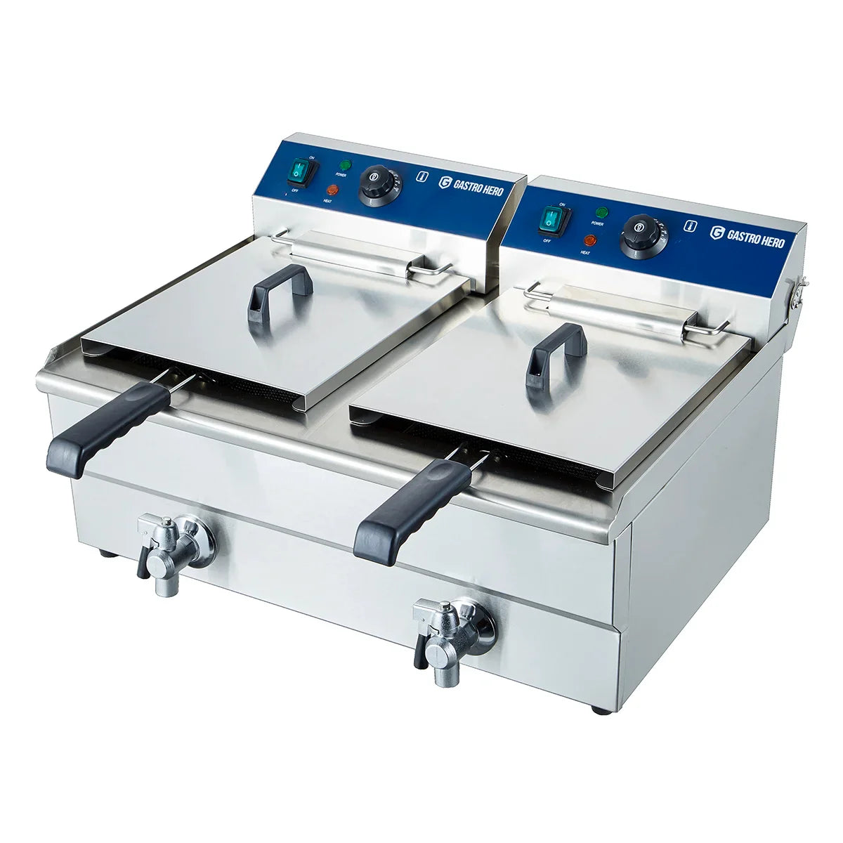 GastroHero Elektro-Doppel-Fritteuse ECO 13+13 Liter mit Ablasshahn, 2x 5000 W, 400 V