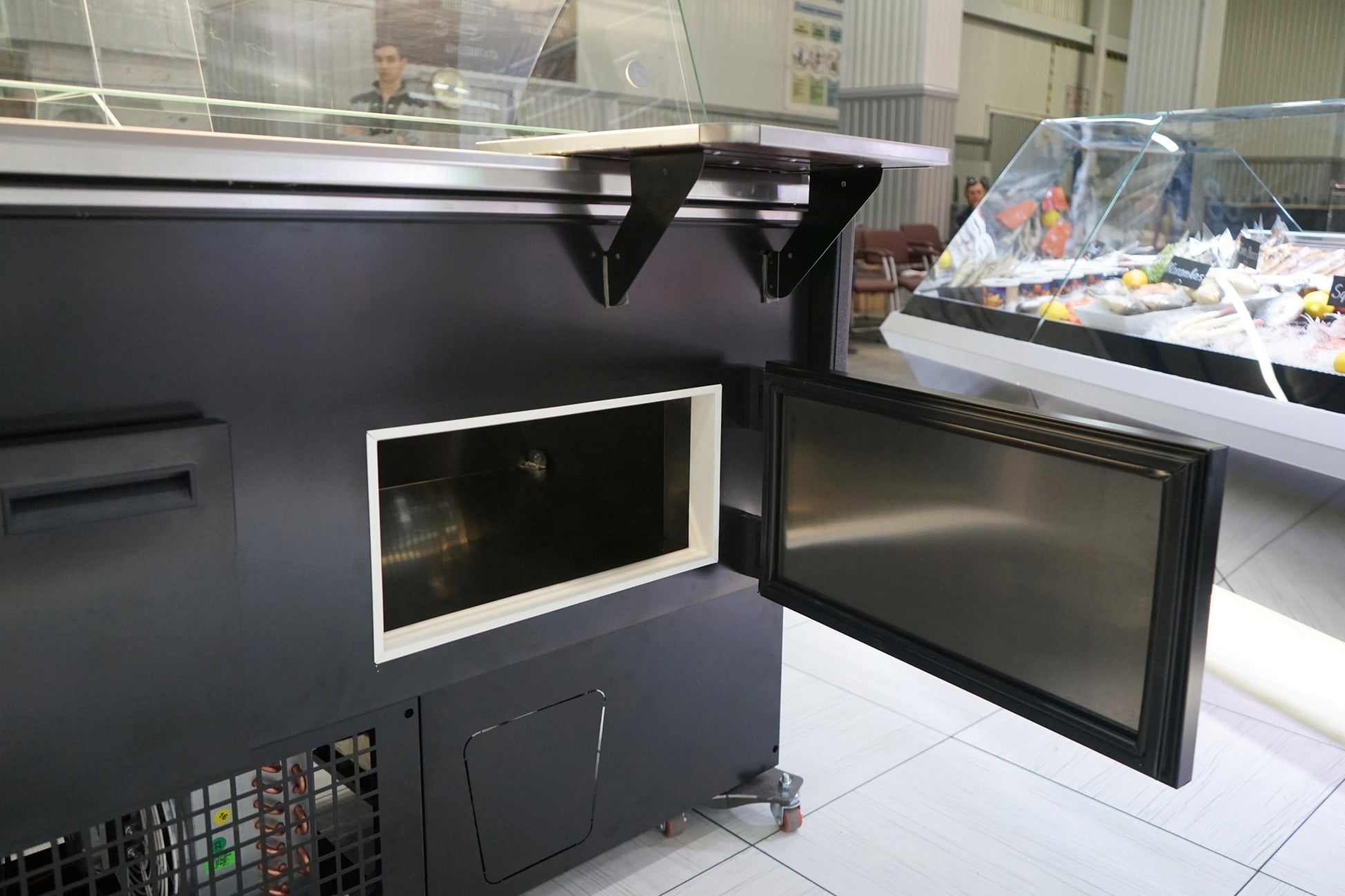 Kühltheke RHEA 1090 mm schwarz, LED-Beleuchtung, gekühlter Unterbau