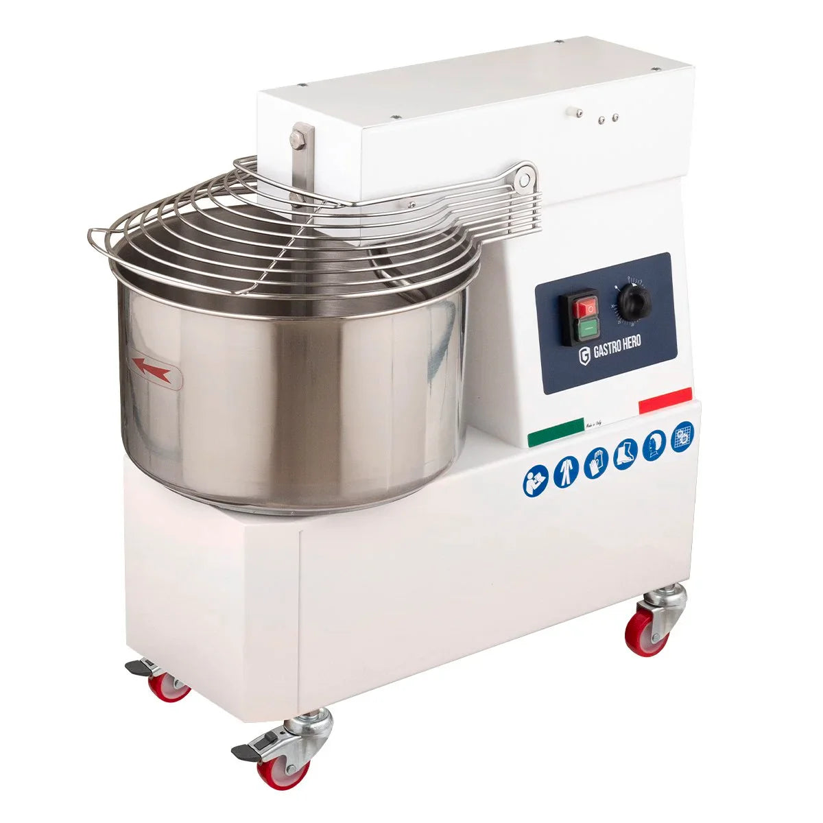 GastroHero Spiral-Teigknetmaschine PROFI 33 Liter 230V mit Rollen - fester Kopf