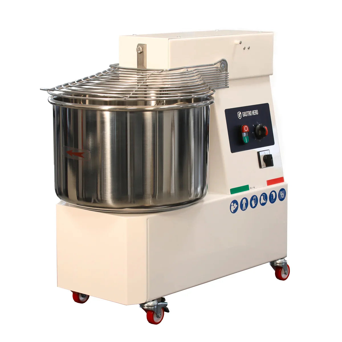 GastroHero Spiral-Teigknetmaschine PROFI 33 Liter 400V mit Rollen - fester Kopf und 2 Geschwindigkeiten