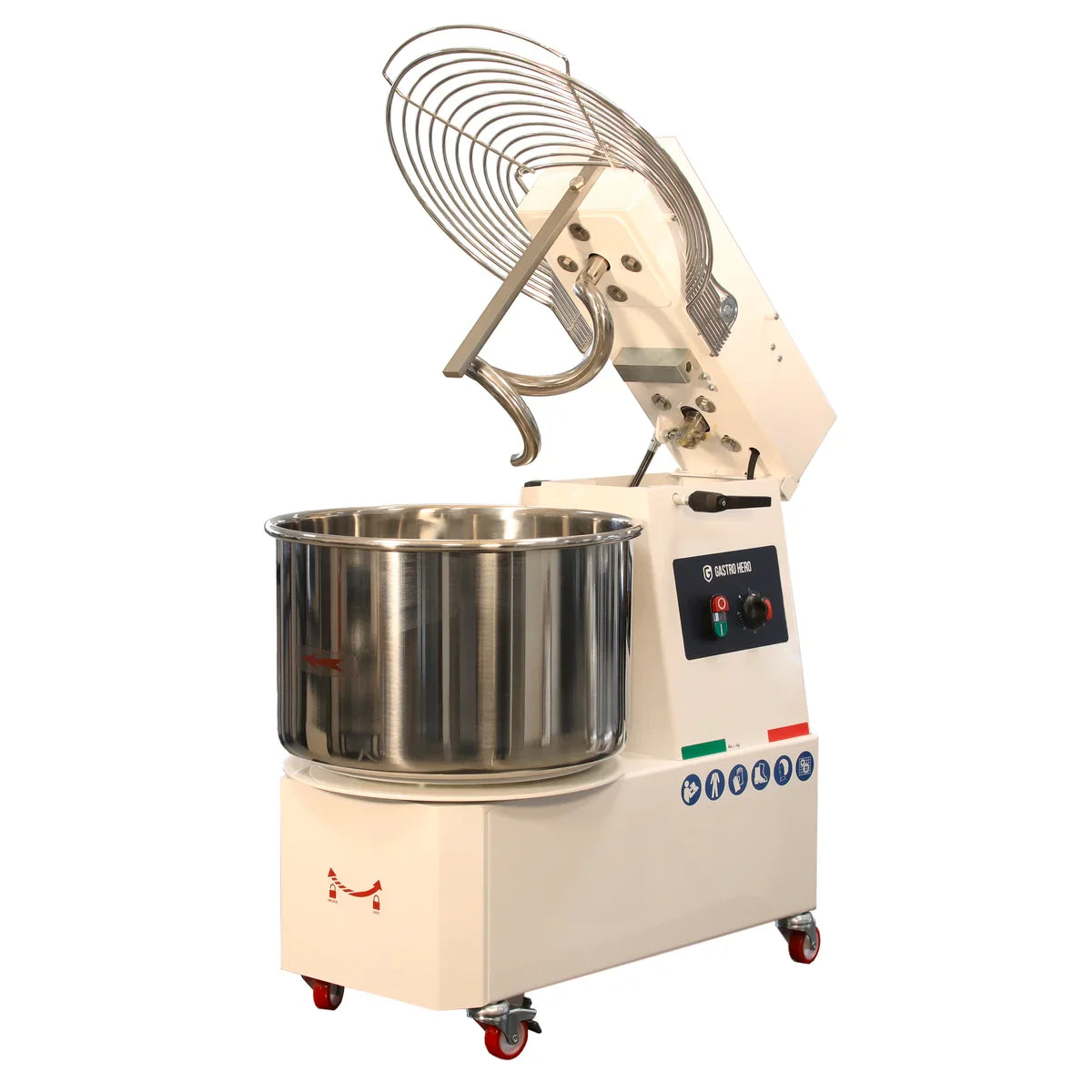 GastroHero Spiral-Teigknetmaschine PROFI 42 Liter 400V mit Rollen - variabler Kopf