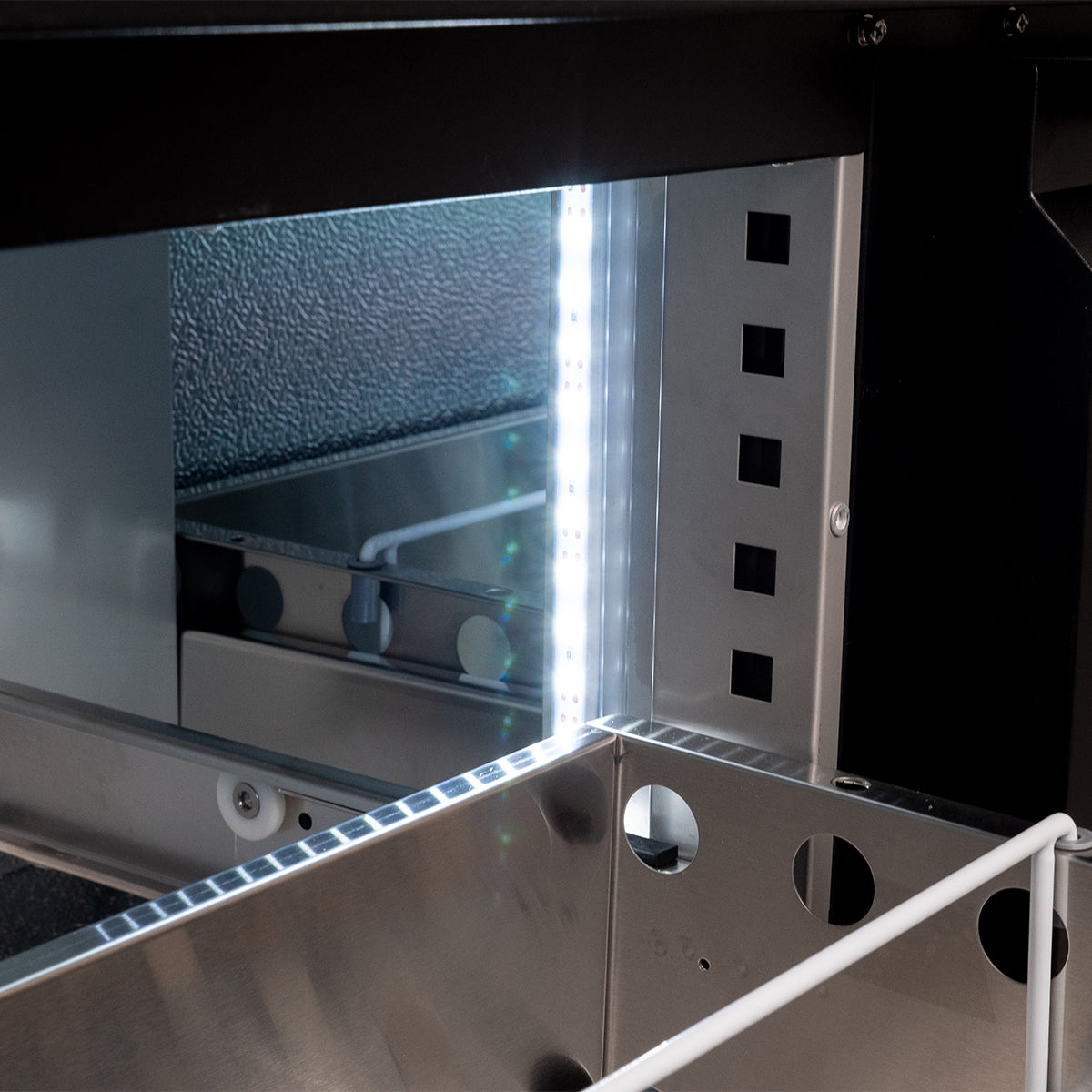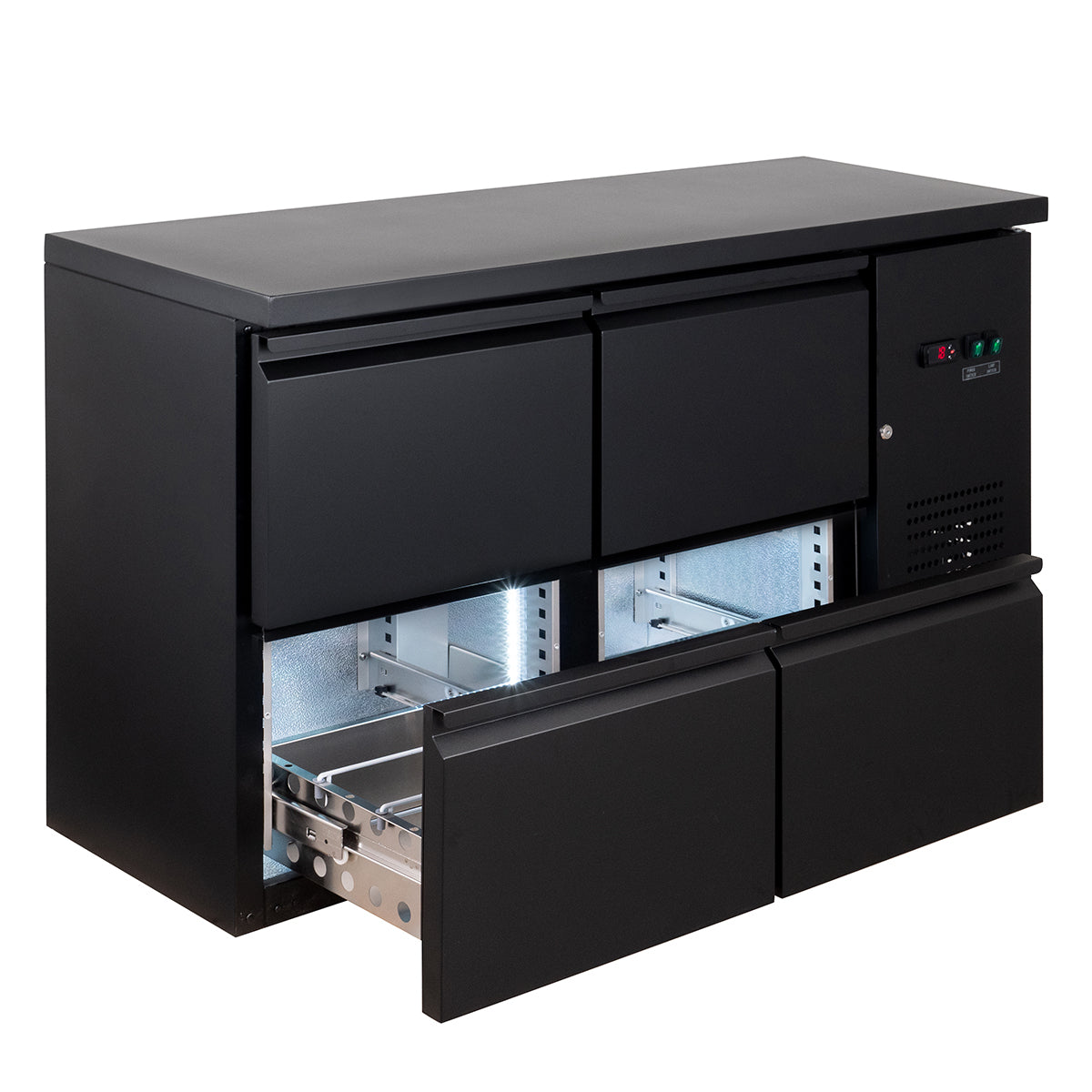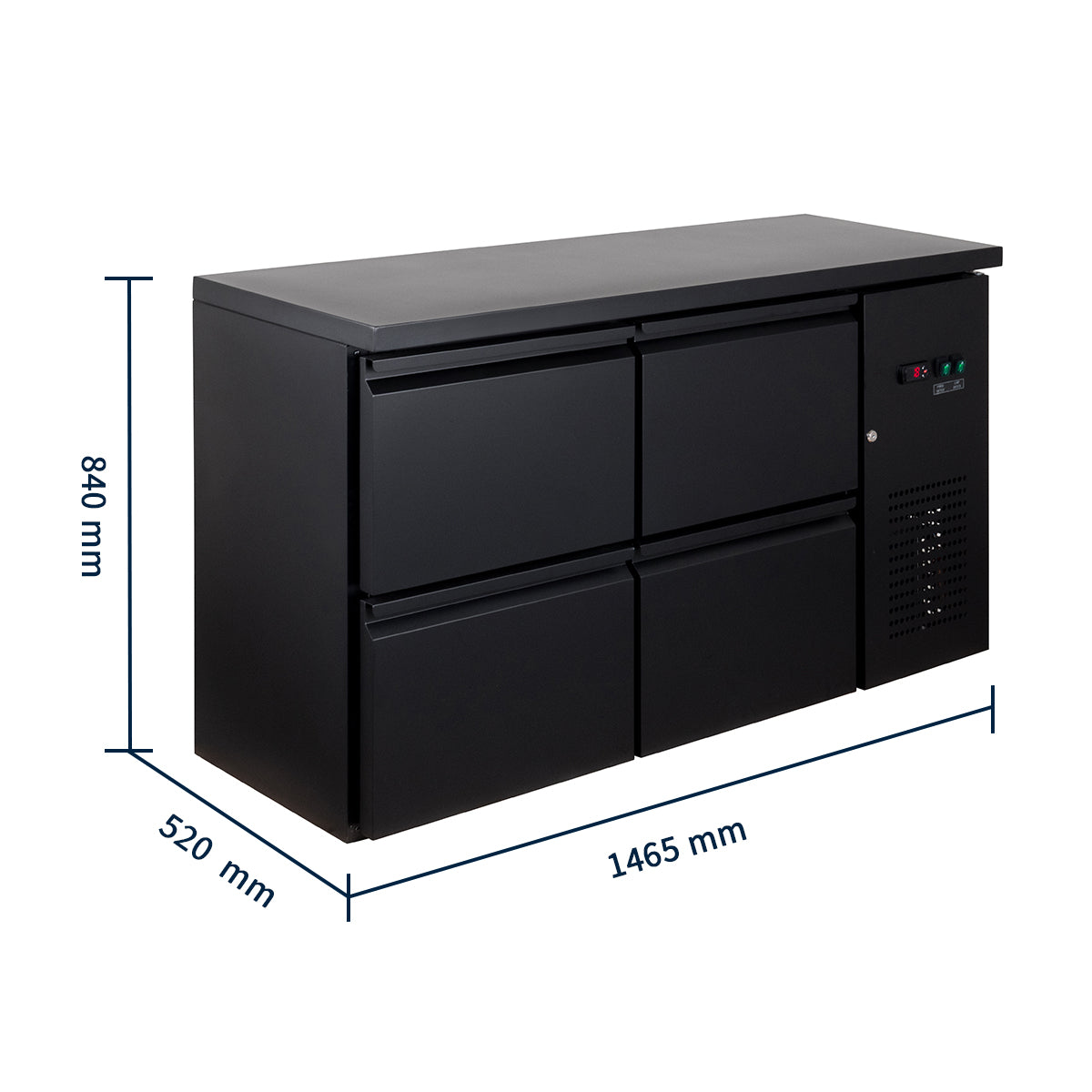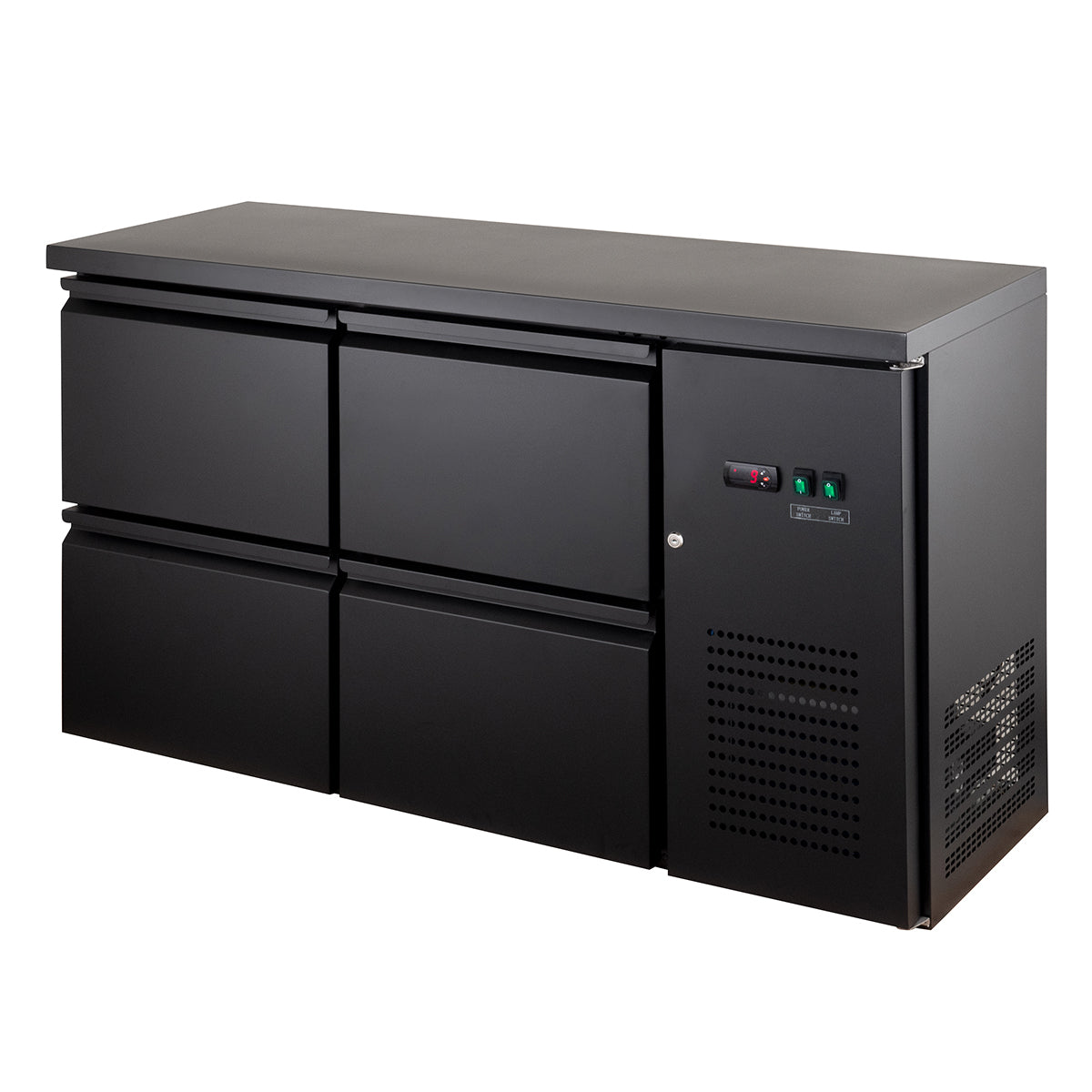 Nos tables réfrigérées pour bars de la série ECO impressionnent par leur design moderne et leur haute fonctionnalité. Grâce à la plage de température idéale de +2°C à +8°C, vous pouvez conserver vos boissons de manière optimale. Grâce à leur profondeur totale de 520 mm et à leur hauteur totale de 840 mm, les tables de refroidissement des barres sont également particulièrement peu encombrantes - ceci est particulièrement important dans les zones de barres souvent étroites.