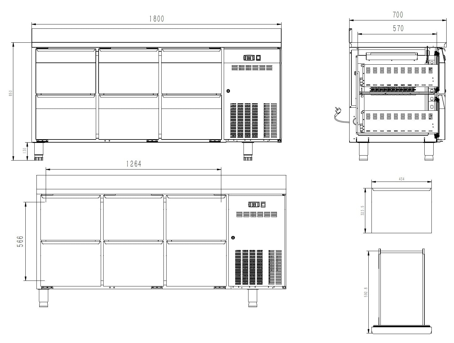 • Plan de travail, intérieur, tiroirs et panneaux latéraux en acier inoxydable de haute qualité