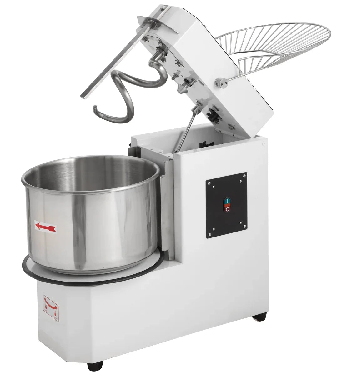 Die Spiralteigmaschine ist die ideale Maschine für das Kneten von Teigen für Pizzerien, Konditoreien und Bäckereien. Die besondere Form des Spiralteigknethakens ermöglicht es in wenigen Minuten, ein perfekt gemischten Teig zu erhalten. Kessel, Knethaken, Teig-Brecher und die Schutzgitter sind aus Edelstahl hergestellt.