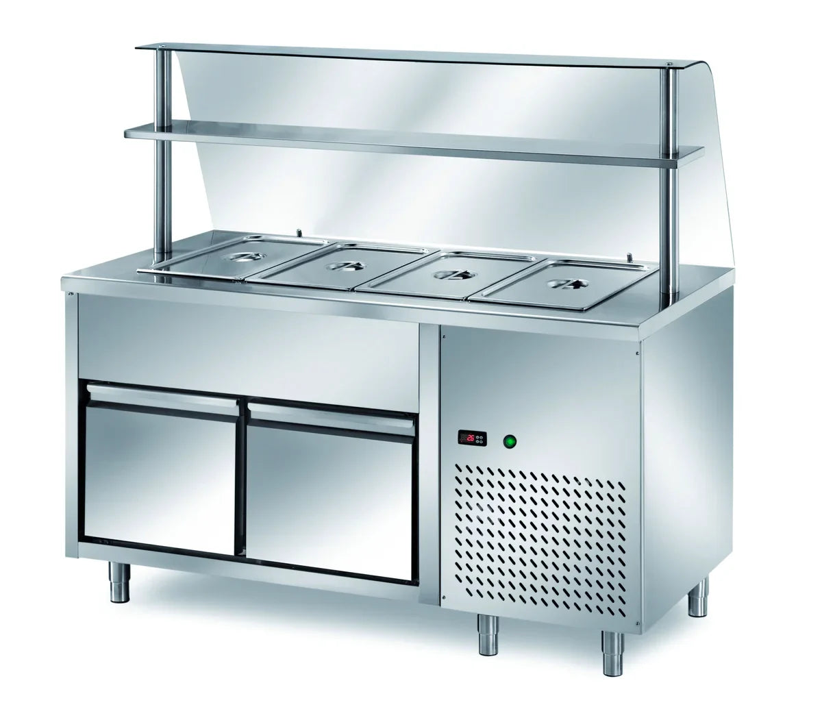 • Selbstbedienungskühltisch aus rostfreiem Stahl mit halbgerundetem Becken