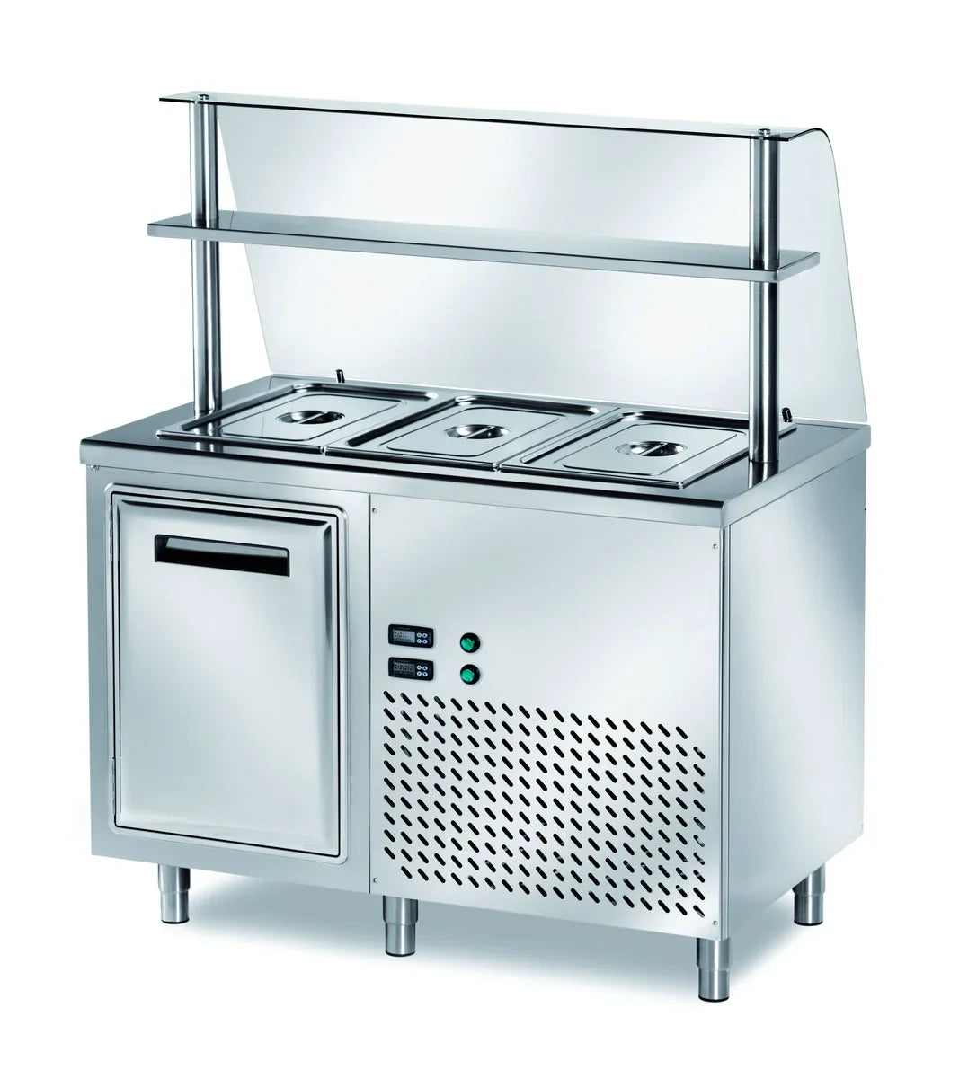 • Selbstbedienungskühltisch aus rostfreiem Stahl mit halbgerundetem Becken
