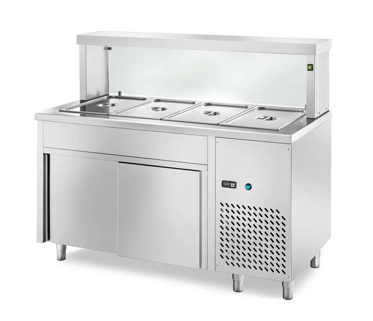 • Selbstbedienungskühltisch aus rostfreiem Stahl mit gekühltem Becken