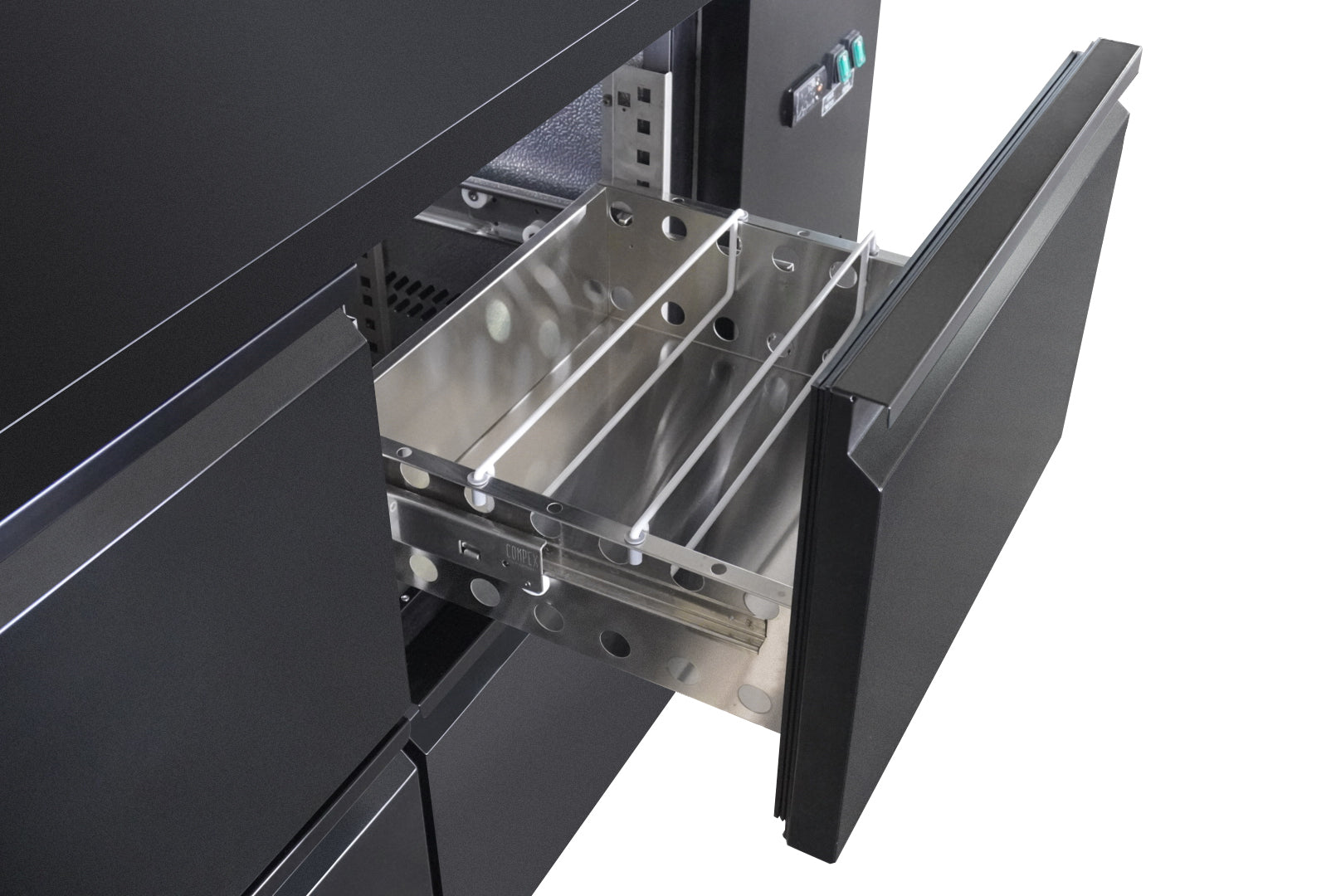 Unsere Barkühltische aus der ECO Serie überzeugen mit modernem Design und hoher Funktionalität. Dank des idealen Temperaturbereichs von +2°C bis +8°C können Sie Ihre Getränke optimal lagern. Durch die Bautiefe von 520 mm und die Bauhöhe von 840 mm sind die Barkühltische zudem besonders platzsparend - insbesondere in oftmals engen Barbereichen ist dies besonders wichtig.