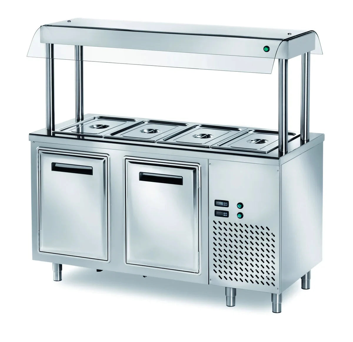 GastroHero Buffetinsel PROFI Kalt mit Flügeltüren und Hustenschutz 1200x700x1500 - 3x GN 1/1