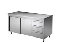 Edelstahl-Arbeitsschrank ECO mit Schiebetür und 3 Schubladen 15x6
