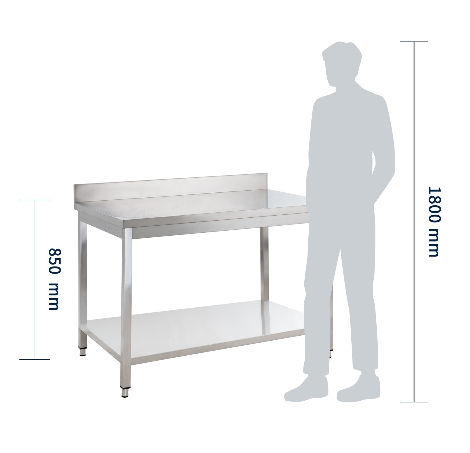 GastroHero Edelstahl Arbeitstisch Basic 10x6 mit Grundboden und Aufkantung