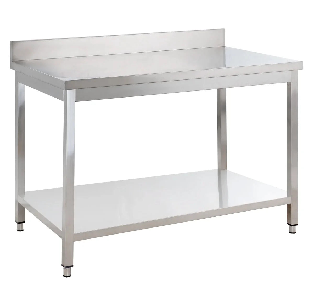 GastroHero Edelstahl Arbeitstisch Basic 14x6 mit Grundboden und Aufkantung