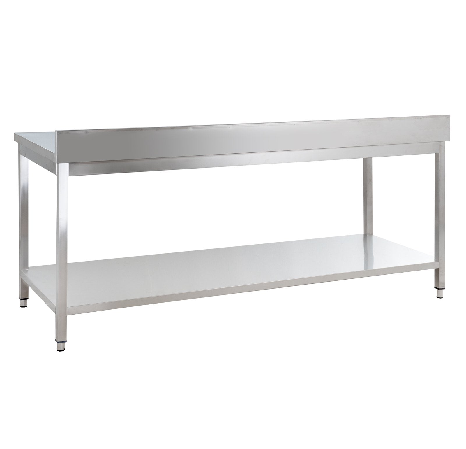 GastroHero Edelstahl Arbeitstisch Basic 16x7 mit Grundboden und Aufkantung