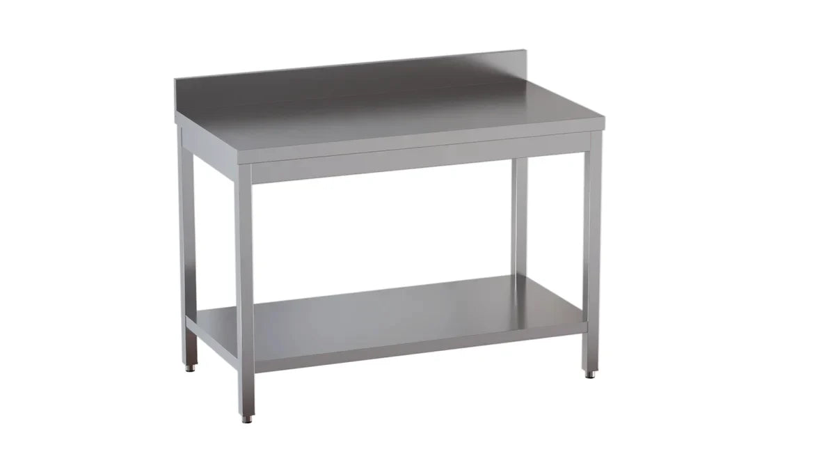 Edelstahl Arbeitstisch Eco 16x6 mit Grundboden und Aufkantung