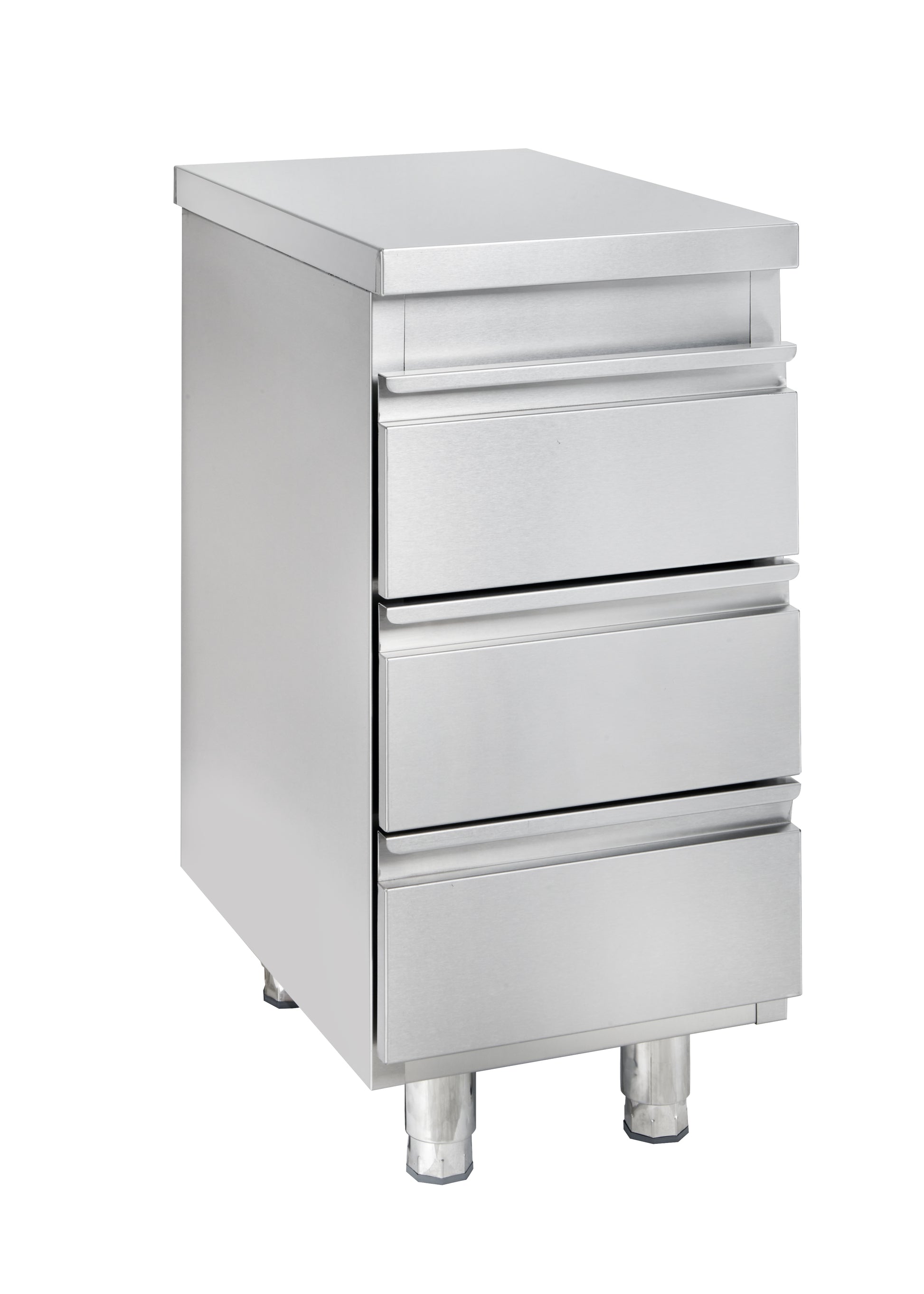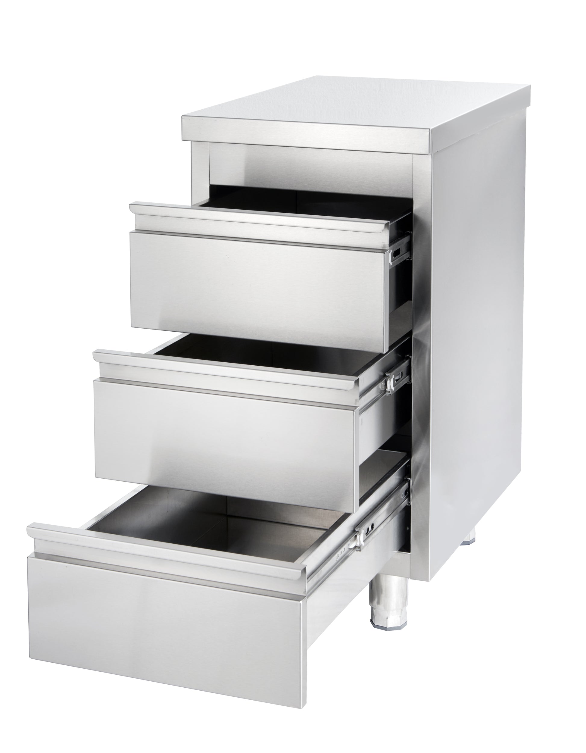 • 3-er Schubladenschrank aus hochwertigem Chrom-Nickel-Stahl AISI 201