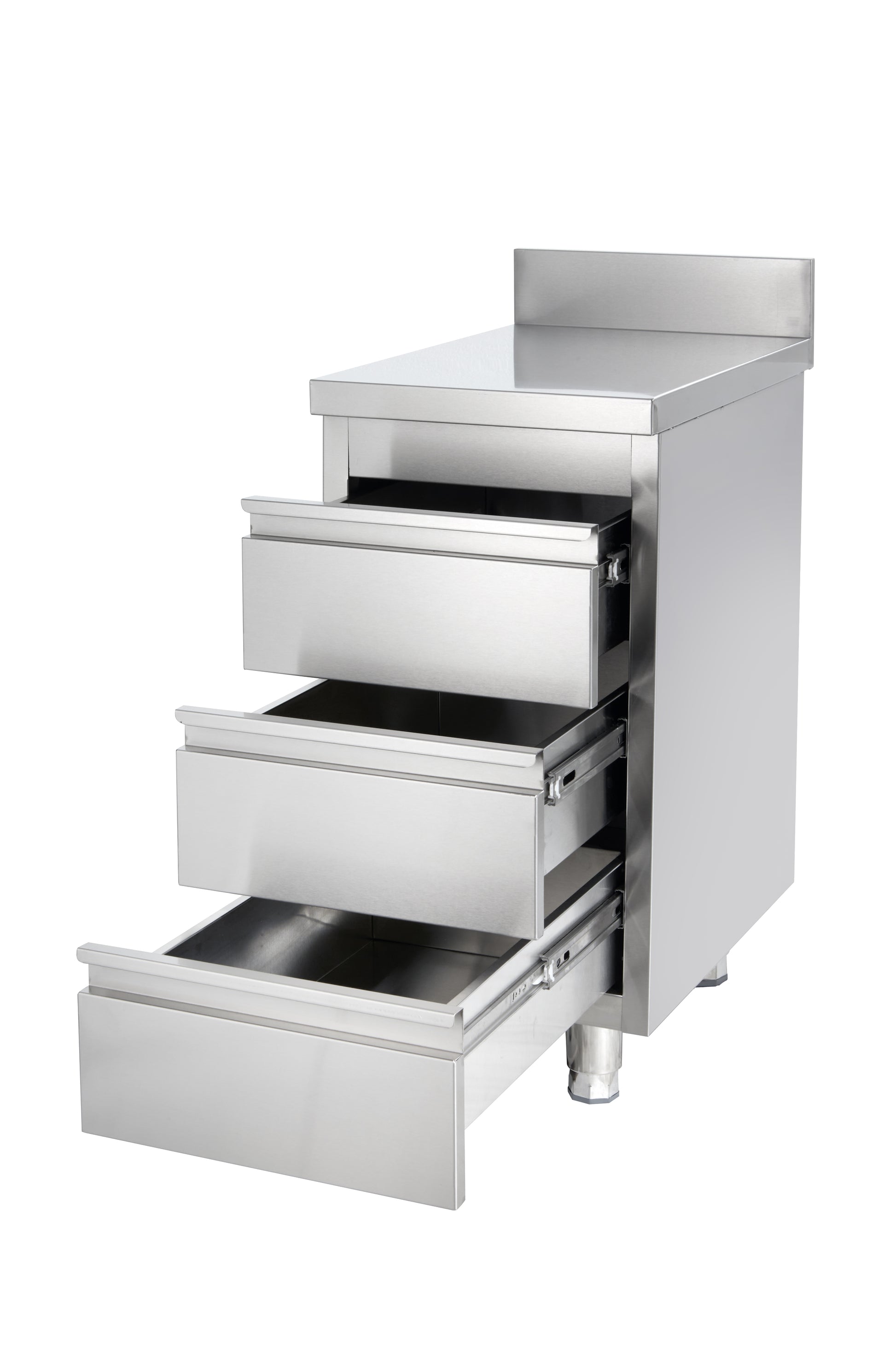 • 3-er Schubladenschrank aus hochwertigem Chrom-Nickel-Stahl AISI 201