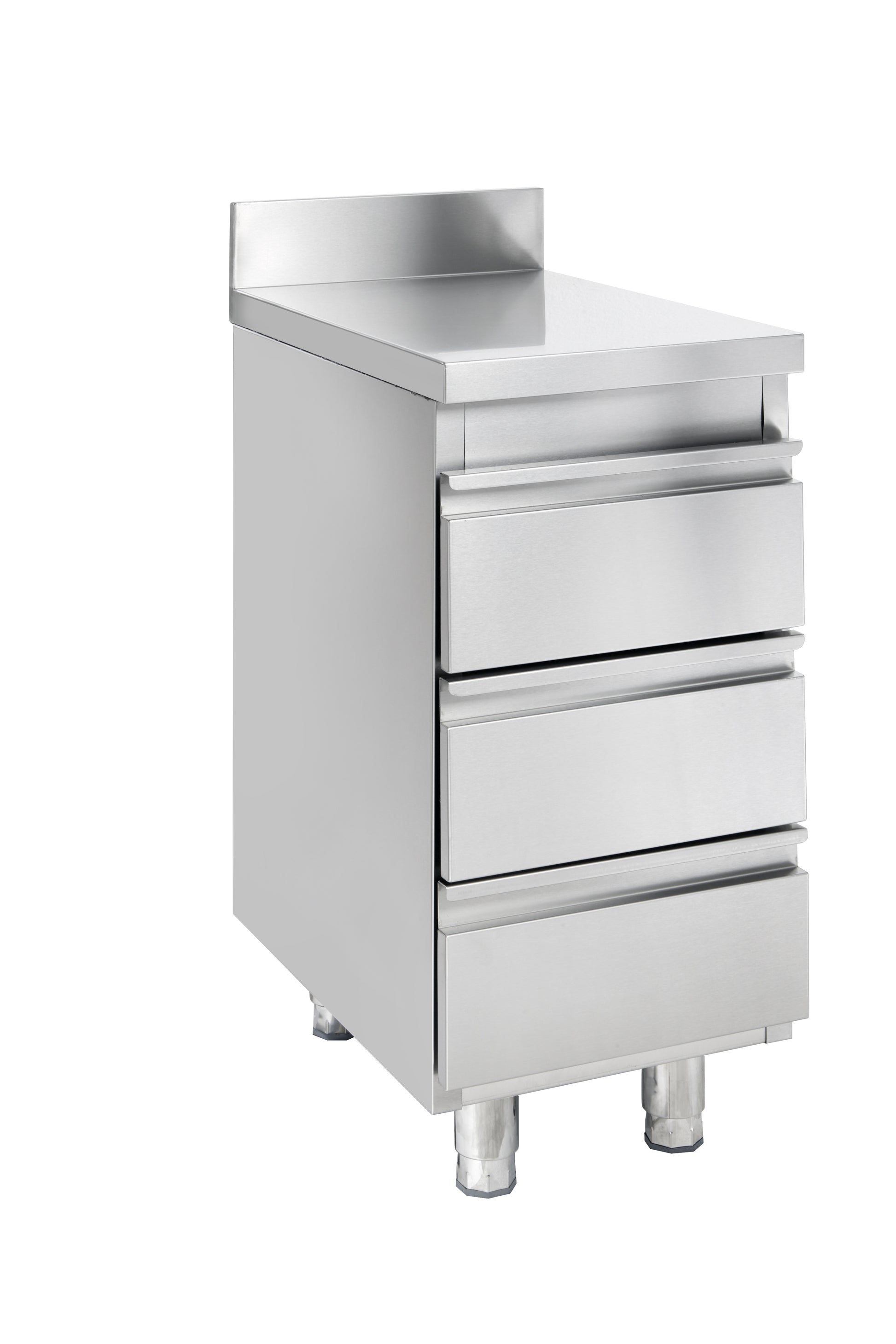 GastroHero Edelstahl-Schubladenschrank BASIC 3er Einheit 600 mit Aufkantung