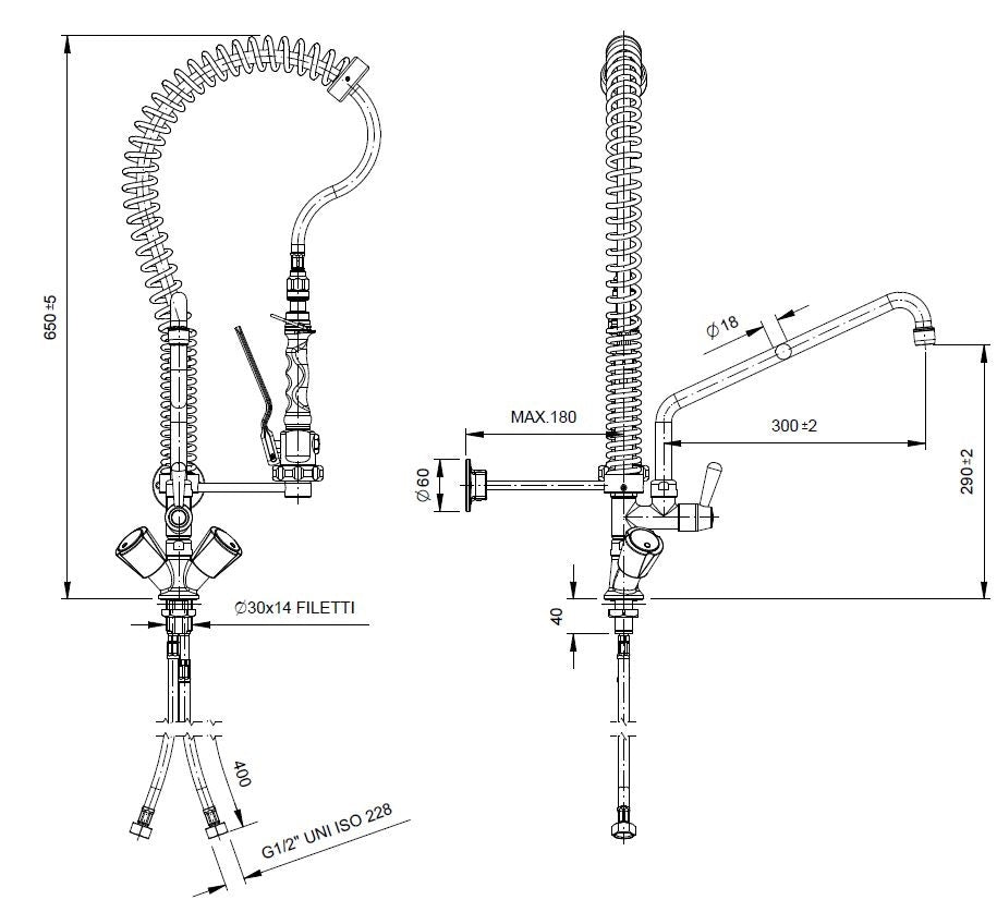 • Höhe der Geschirrwaschbrause: ca. 650 mm