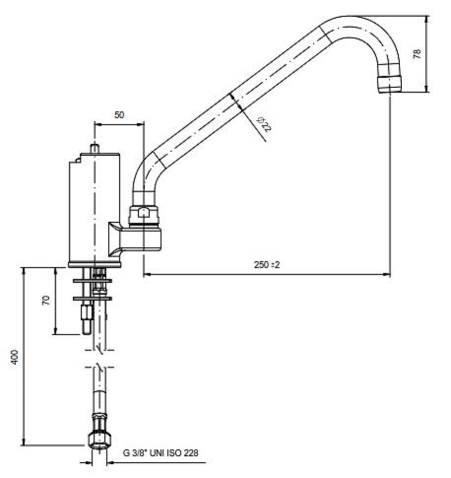 • Durchmesser des Wasserhahns: Ø 22 mm