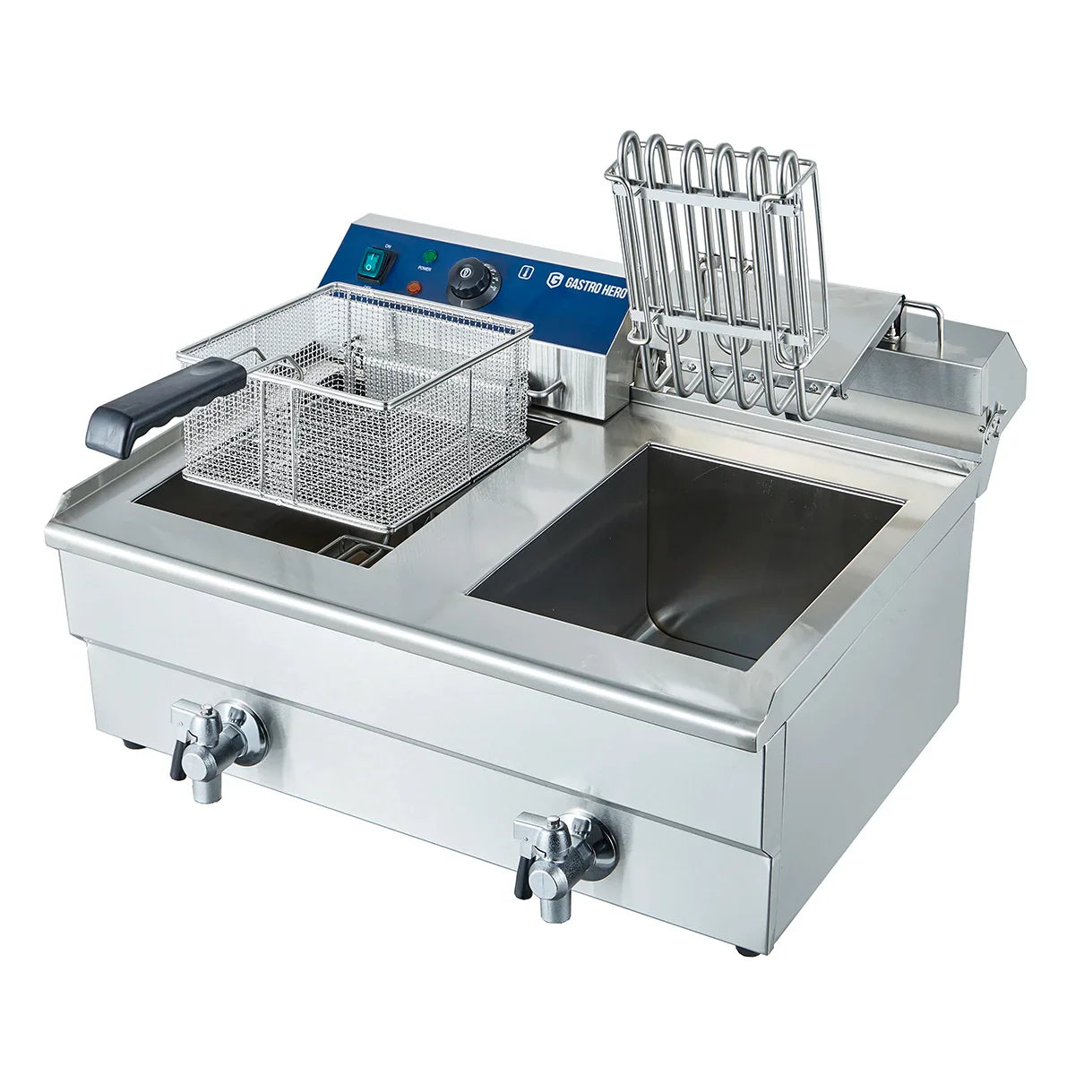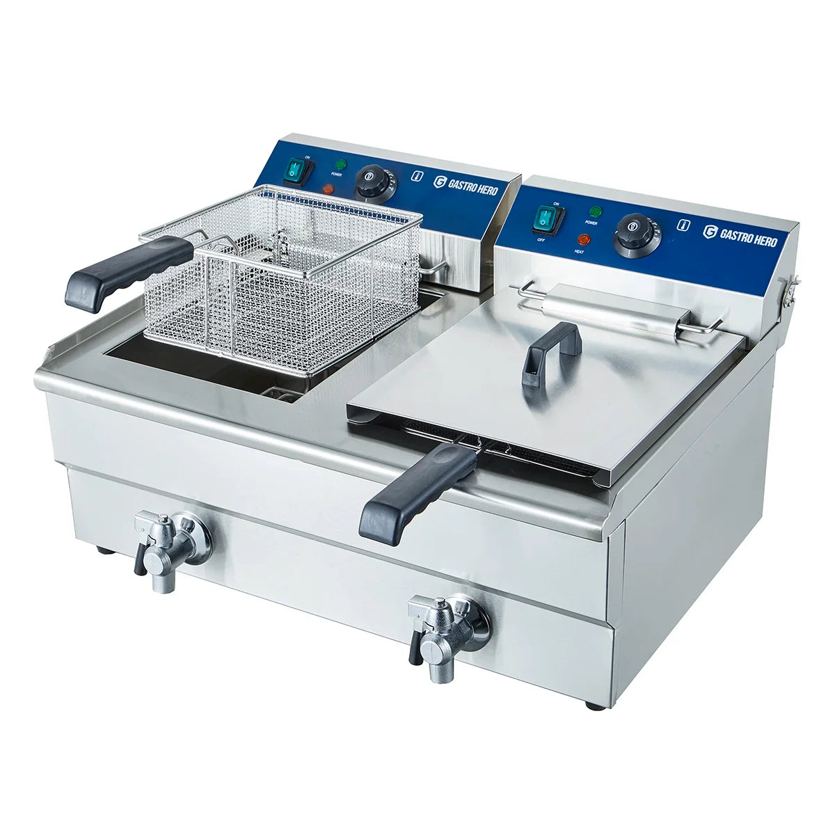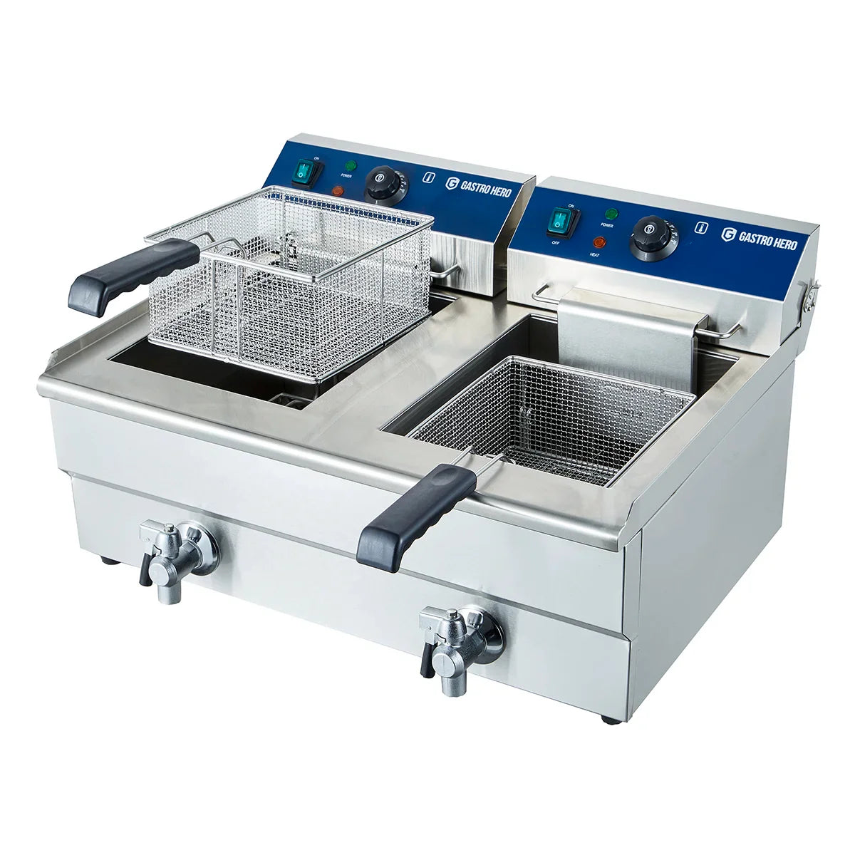 GastroHero Elektro-Doppel-Fritteuse ECO 13+13 Liter mit Ablasshahn, 2x 5000 W, 400 V