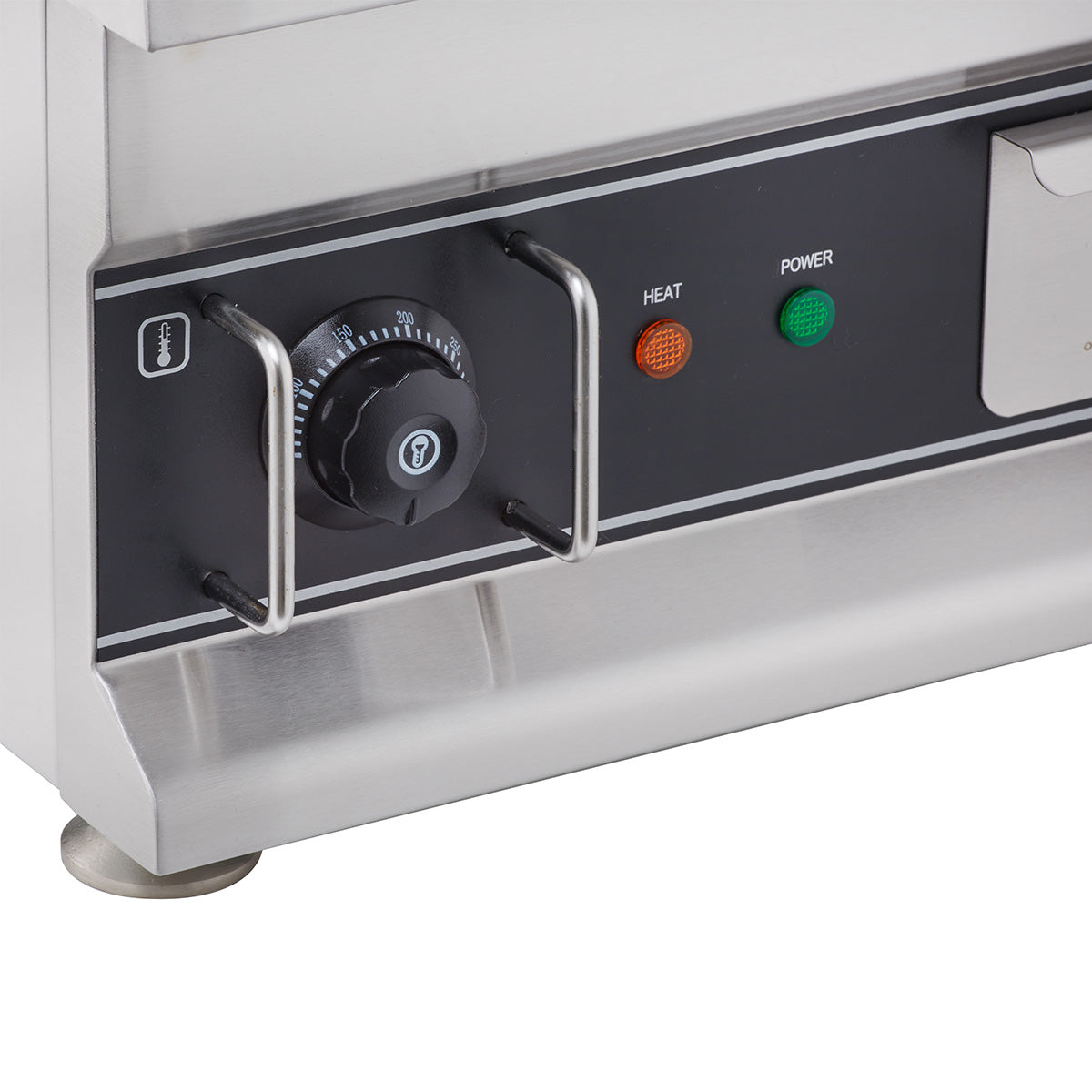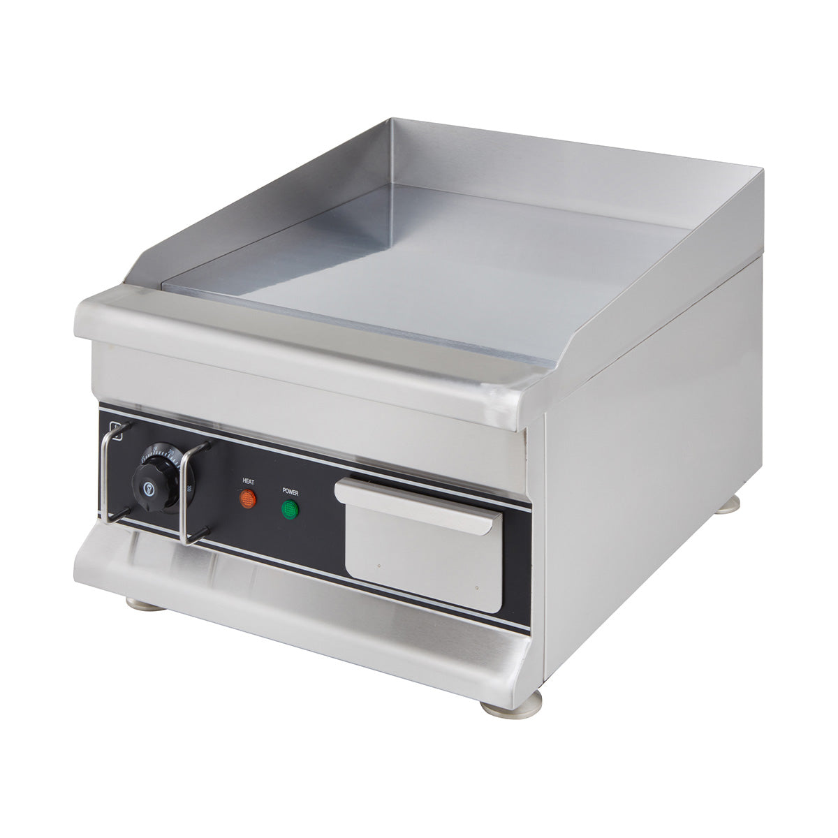 • Glatte, verchromte Elektro-Grillplatte als Tischgerät