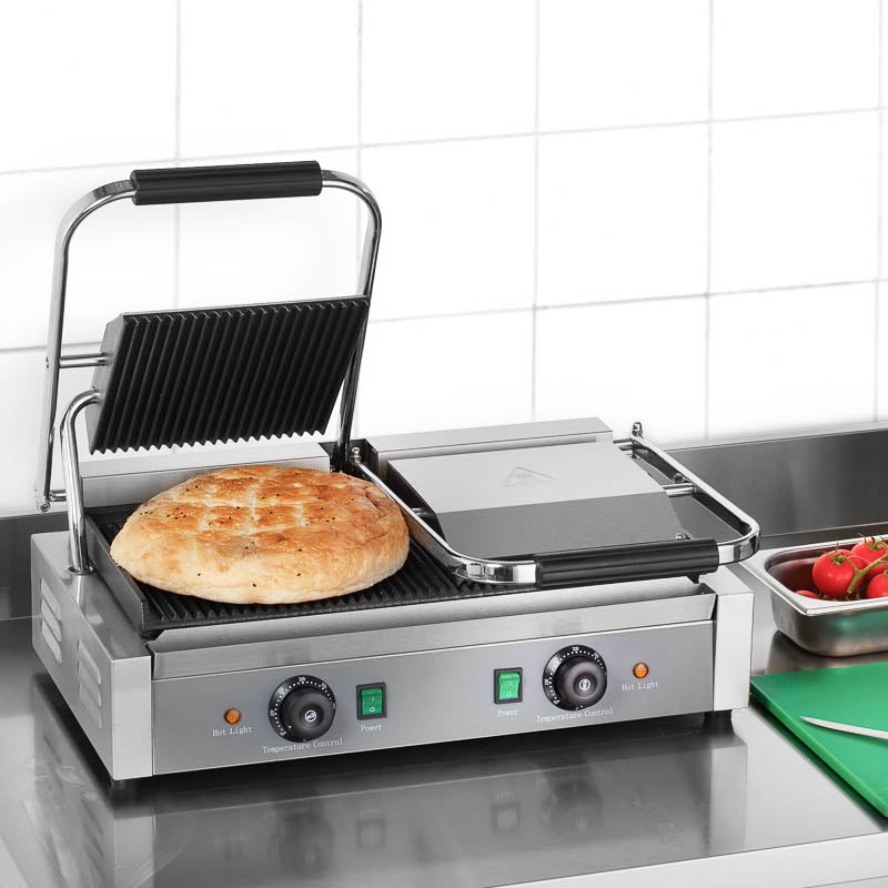 GastroHero Elektro-Kontaktgrill ECO 2 x 1,8 kW, gerillt