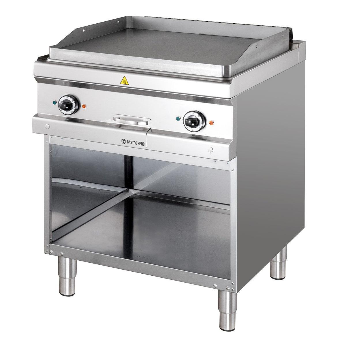 • Glatte Elektrogrillplatte mit offenem Unterbau