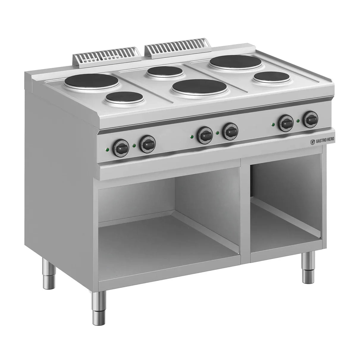 • Elektroherd mit 6 runden Kochfeldern und offenem Unterbau
