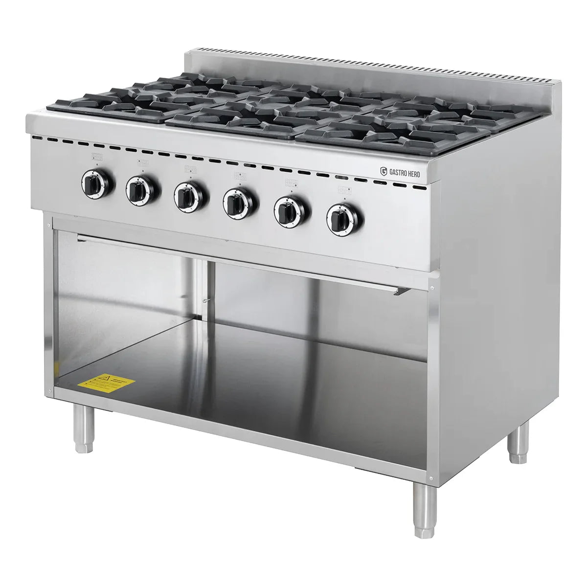 GastroHero Gasherd ECO mit offenem Unterbau - 43,2 kW - 6 Brenner