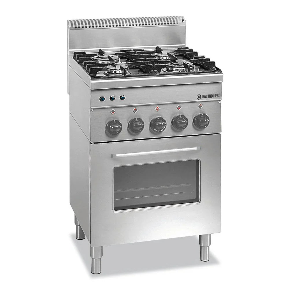 GastroHero Gasherd Serie 66 - 60/60 mit Elektrobackofen und Elektrogrill