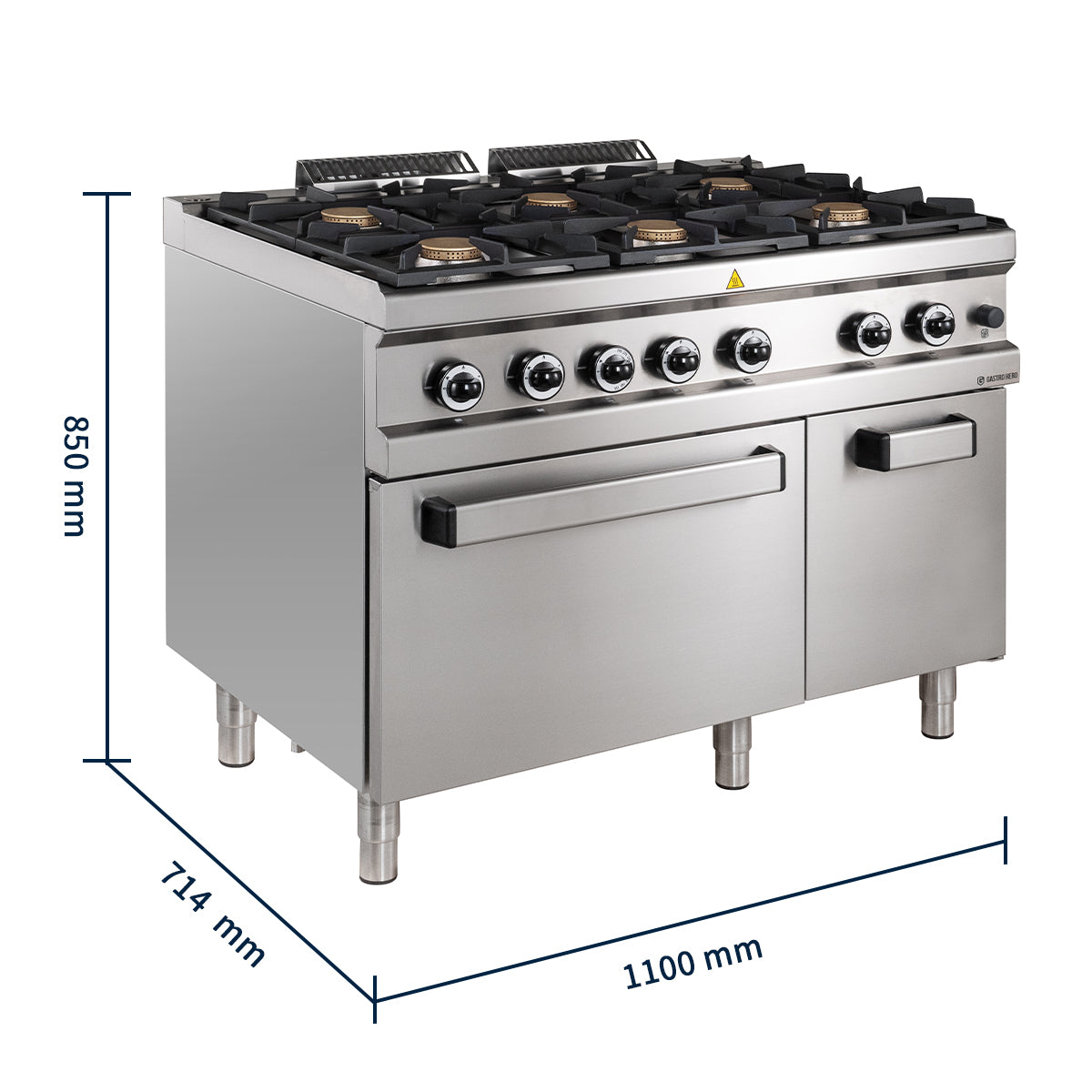 GastroHero Gasherd Serie 77 - 110/70 mit Elektrobackofen 42 kW