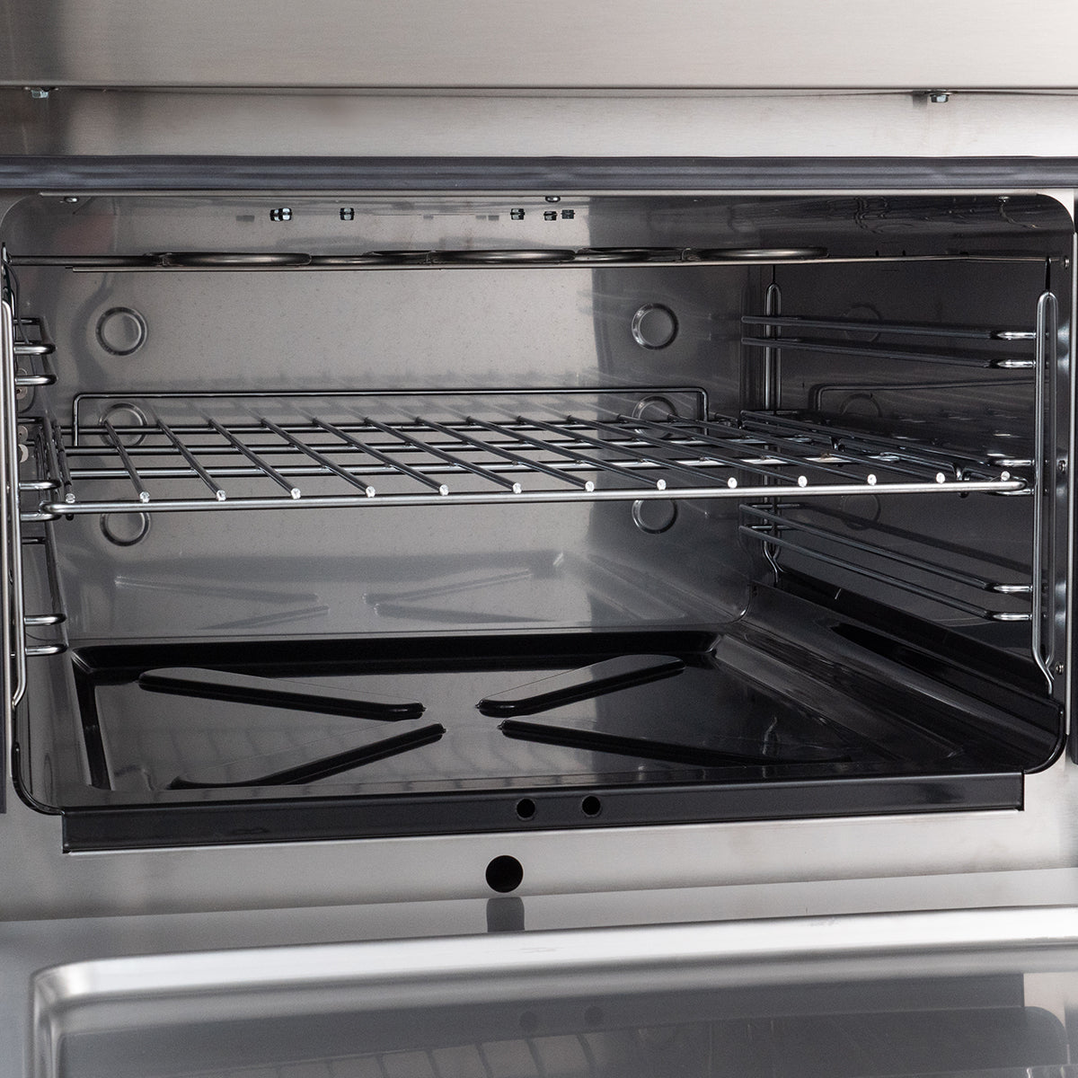 • der Garraum ist vollständig aus Edelstahl gefertigt und bietet Platz für GN 2/1 Roste