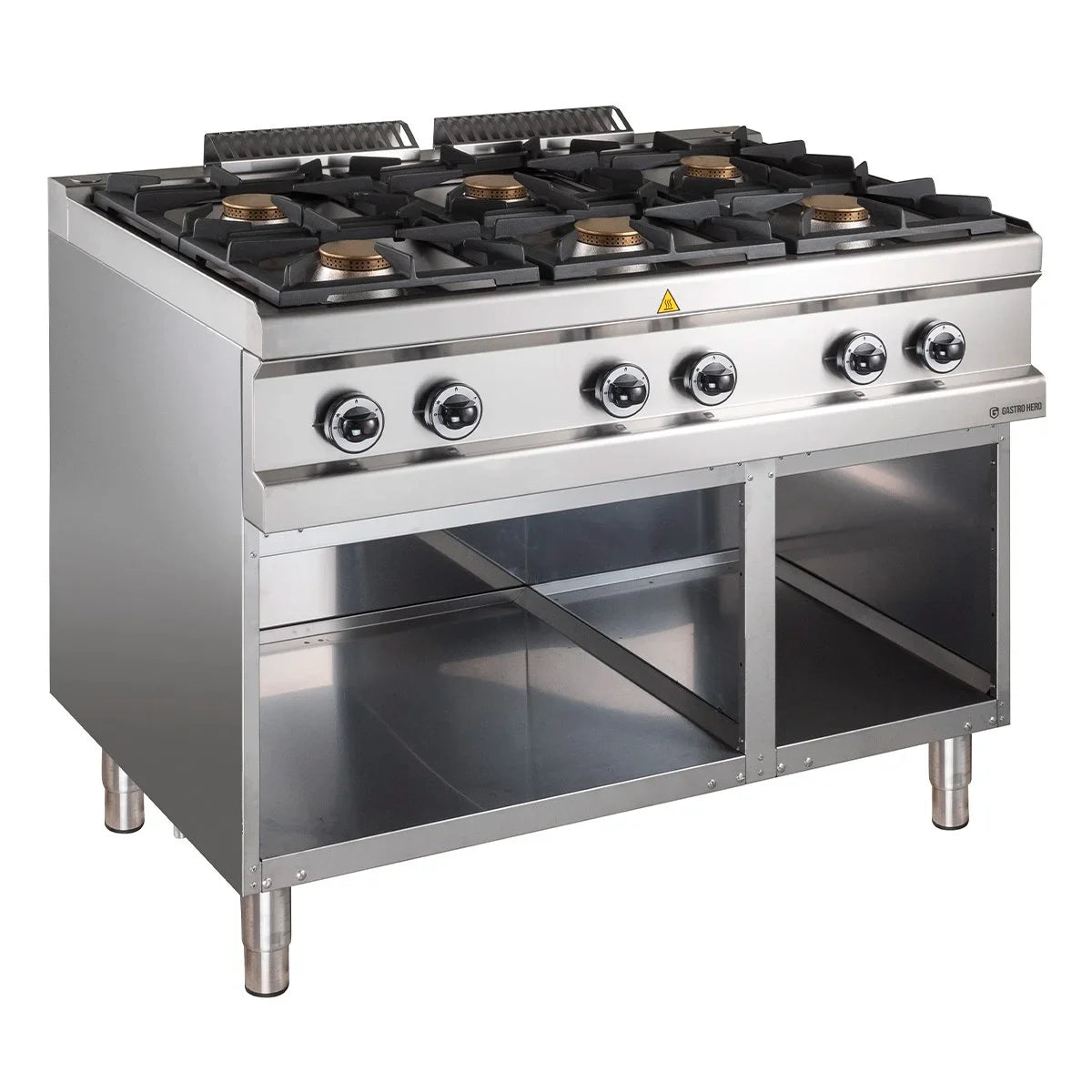 • Gasherd mit 6 Flammen und offenem Unterbau