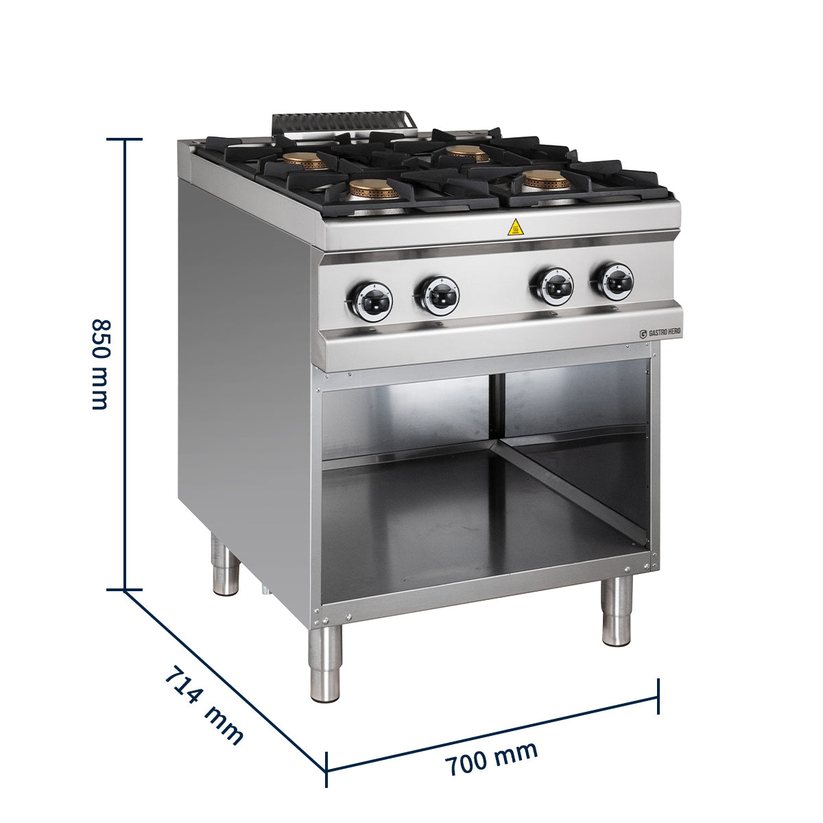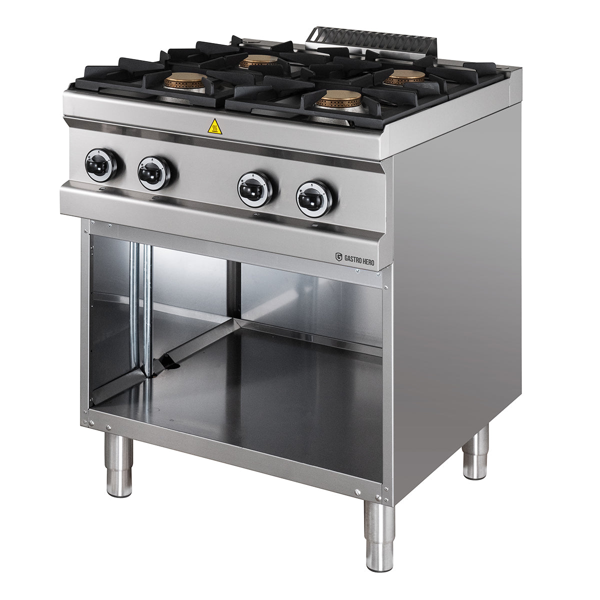 • Gasherd mit 4 Flammen und offenem Unterbau