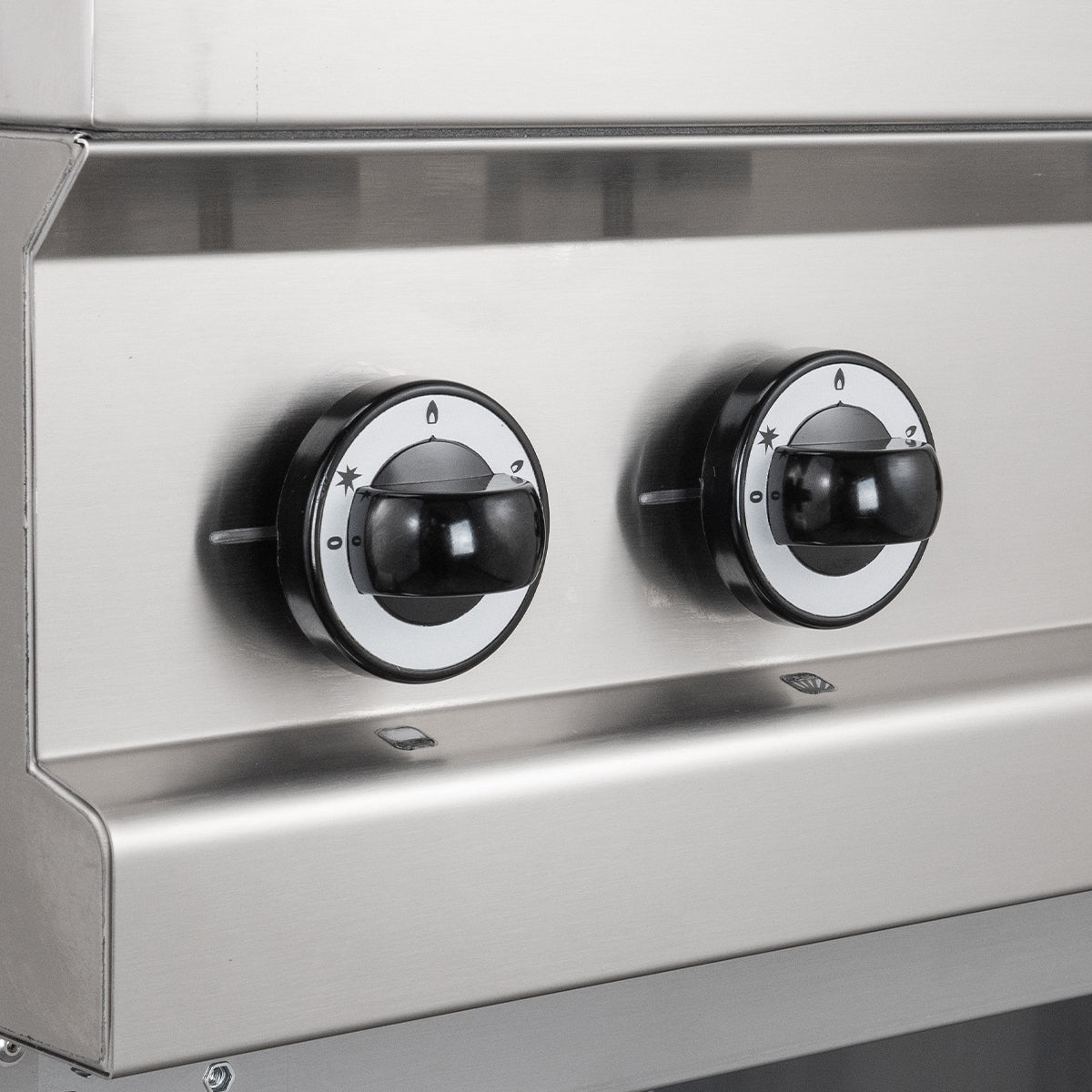 • Kochstellenmaße (B x T): 2x 580 x 315 mm, 4 Brenner mit einem Rost, abgedeckt