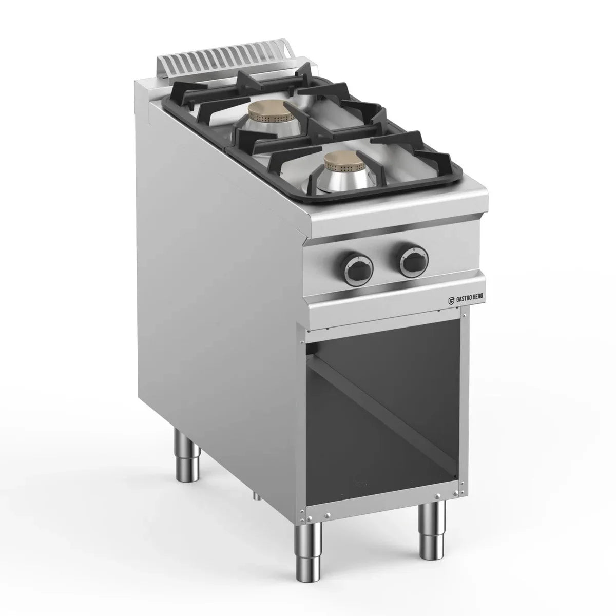 • Gasherd mit 2 Flammen und offenem Unterbau