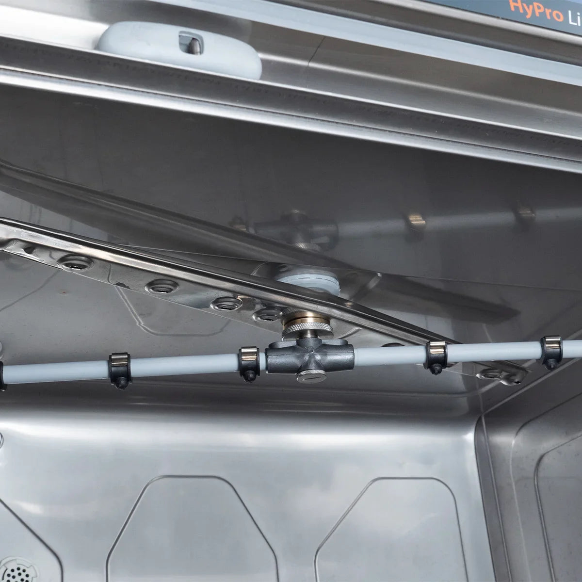 Über das Klartextdisplay der Geschirrspülmaschine HyPro 50 SLE können die unterschiedlichen Programme anwenderfreundlich ausgewählt und nach persönlichen Bedürfnissen angepasst werden. Die eingebaute Drucksteigerungspumpe schafft mehr Unabhängigkeit vom gegebenen Wasserdruck und ermöglicht zusätzlich die Einhaltung höherer Hygienestandards. Elektronische Dosierpumpen bieten die Möglichkeit eine sehr genaue und sparsame Dosierung unserer Reinigungschemie und erreichen gemeinsam mit der Drucksteigerungspumpe ein hygienisches Spülergebnis. Unsere HyPro Untertischspülmaschinen werden allen Bedürfnissen eines modernen und professionellen Gewerbes in der Gastronomie, der Hotellerie, in Cafés oder anderen Betrieben, gerecht.