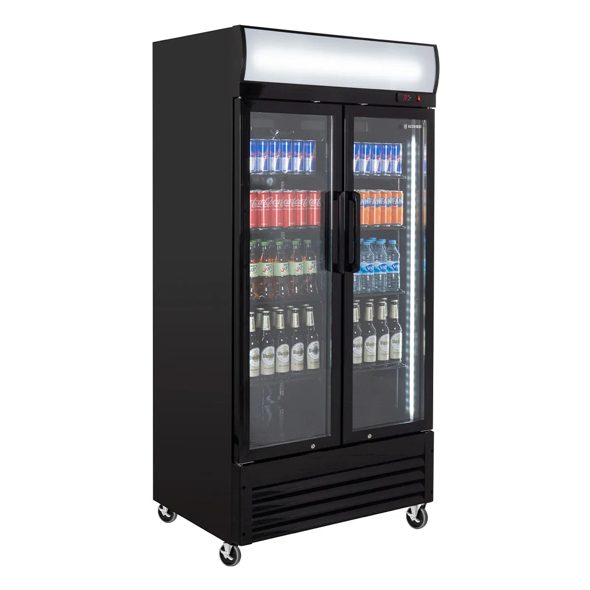 GastroHero Getränkekühlschrank ECO 630 mit Leuchtaufsatz und Klapptüren