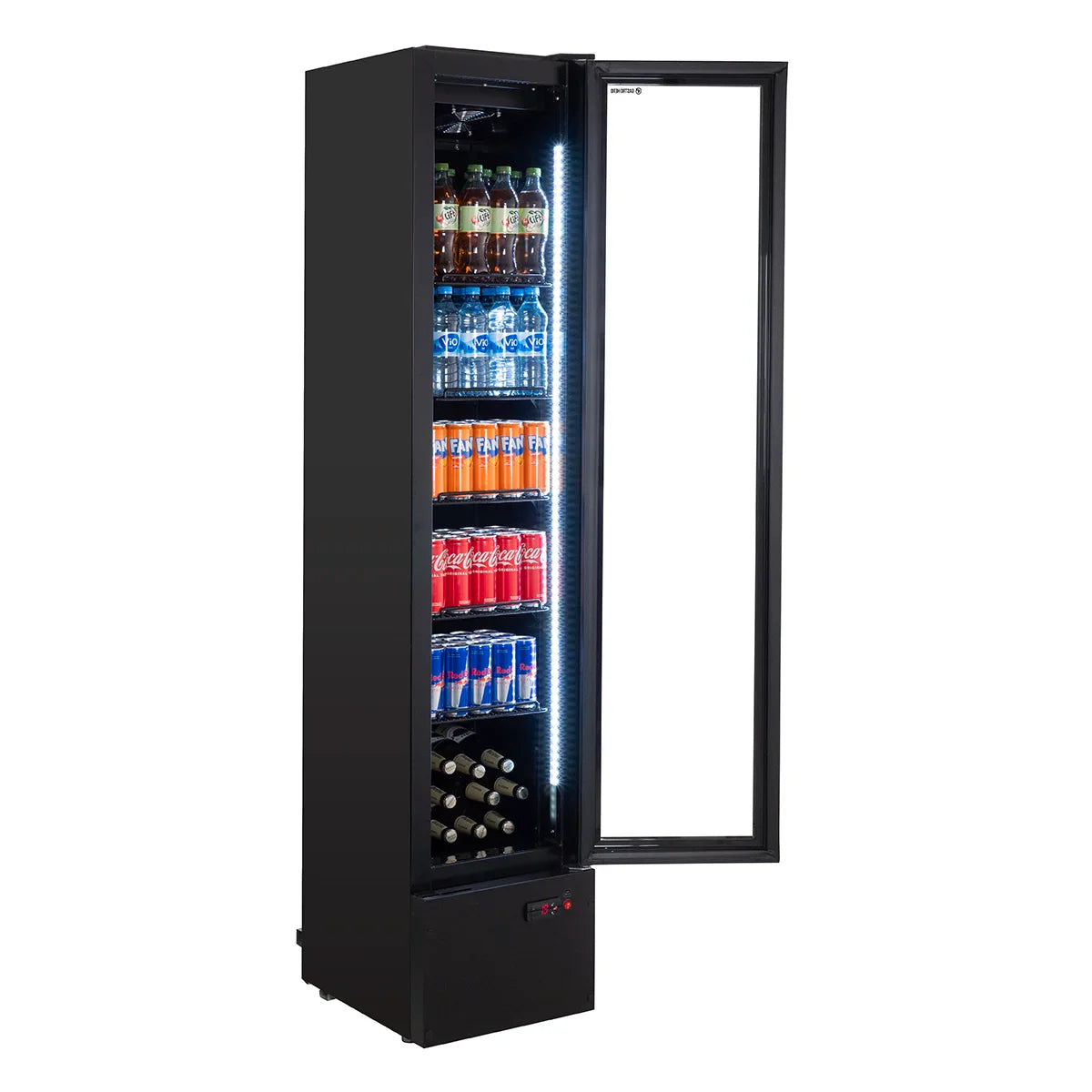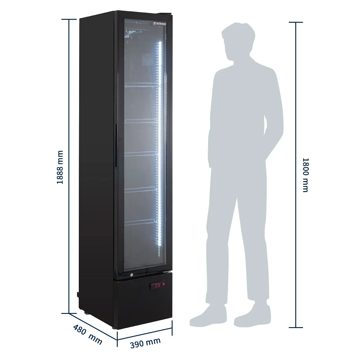 GastroHero Getränkekühlschrank GKS-160 Slim, 160 Liter Kühlraumvolumen, Innenbeleuchtung, schwarz