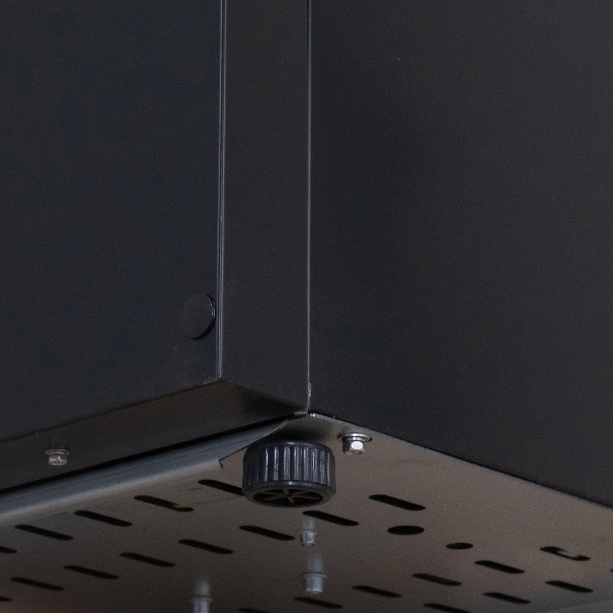 • 2 höhenverstellbare Füße und 2 Rollen für ein leichtes Verschieben