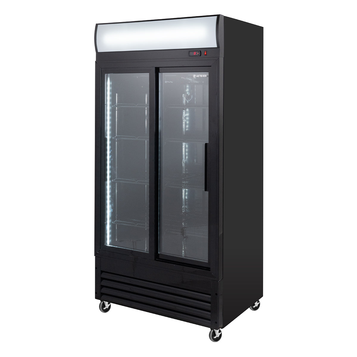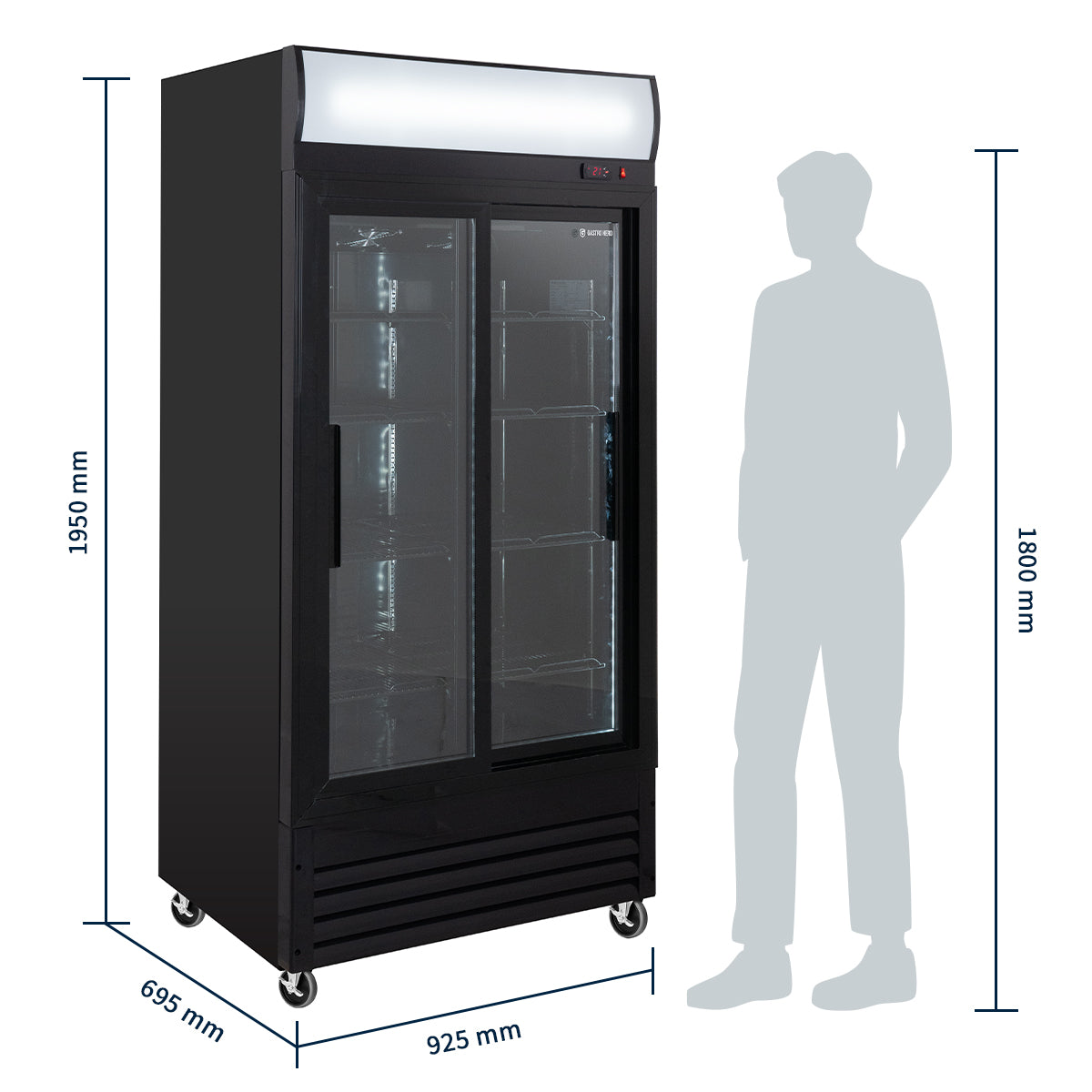 GastroHero Getränkekühlschrank ECO 630 mit Leuchtaufsatz und Schiebetüren