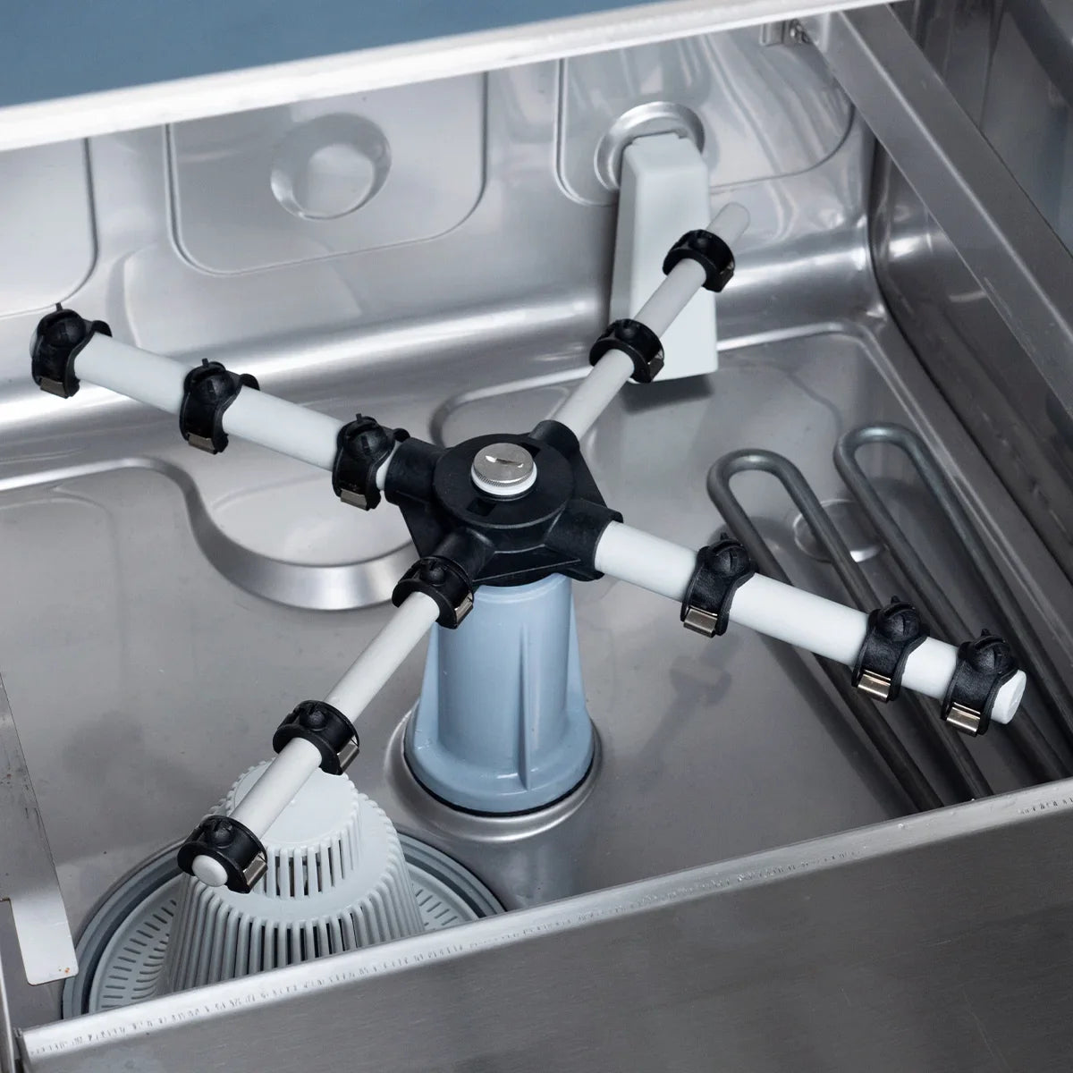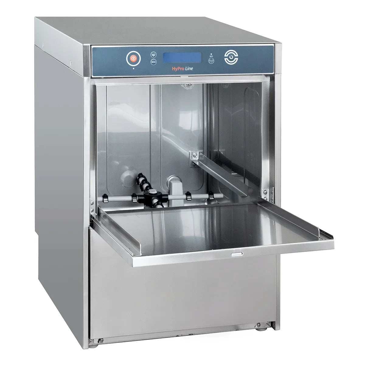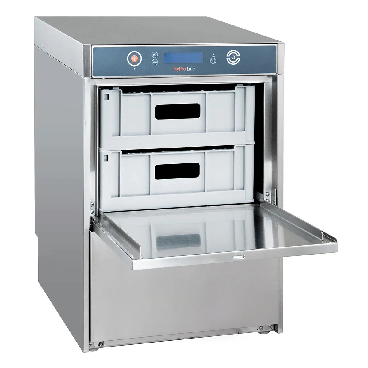 Über das digitale Display der Geschirrspülmaschine HYPRO 40 SL können die unterschiedlichen Programme anwenderfreundlich ausgewählt und nach persönlichen Bedürfnissen angepasst werden. Elektronische Dosierpumpen bieten die Möglichkeit eine sehr genaue und sparsame Dosierung unserer Reinigungschemie und erreichen gemeinsam mit der Drucksteigerungspumpe ein hygienisches Spülergebnis. Unsere HYPRO Spülmaschinen werden allen Bedürfnissen eines modernen und professionellen Gewerbes in der Gastronomie, der Hotellerie, in Cafés oder anderen Betrieben, gerecht.