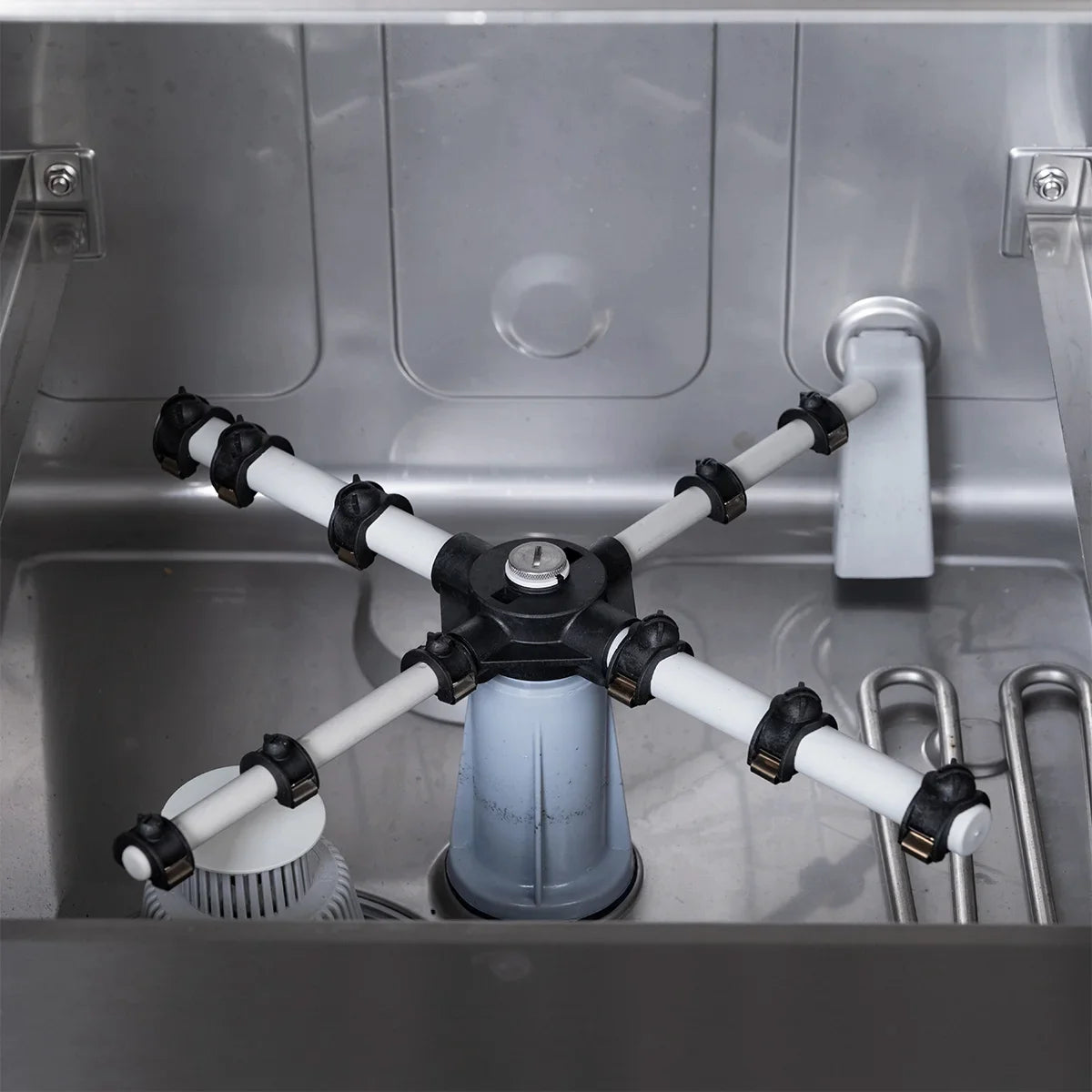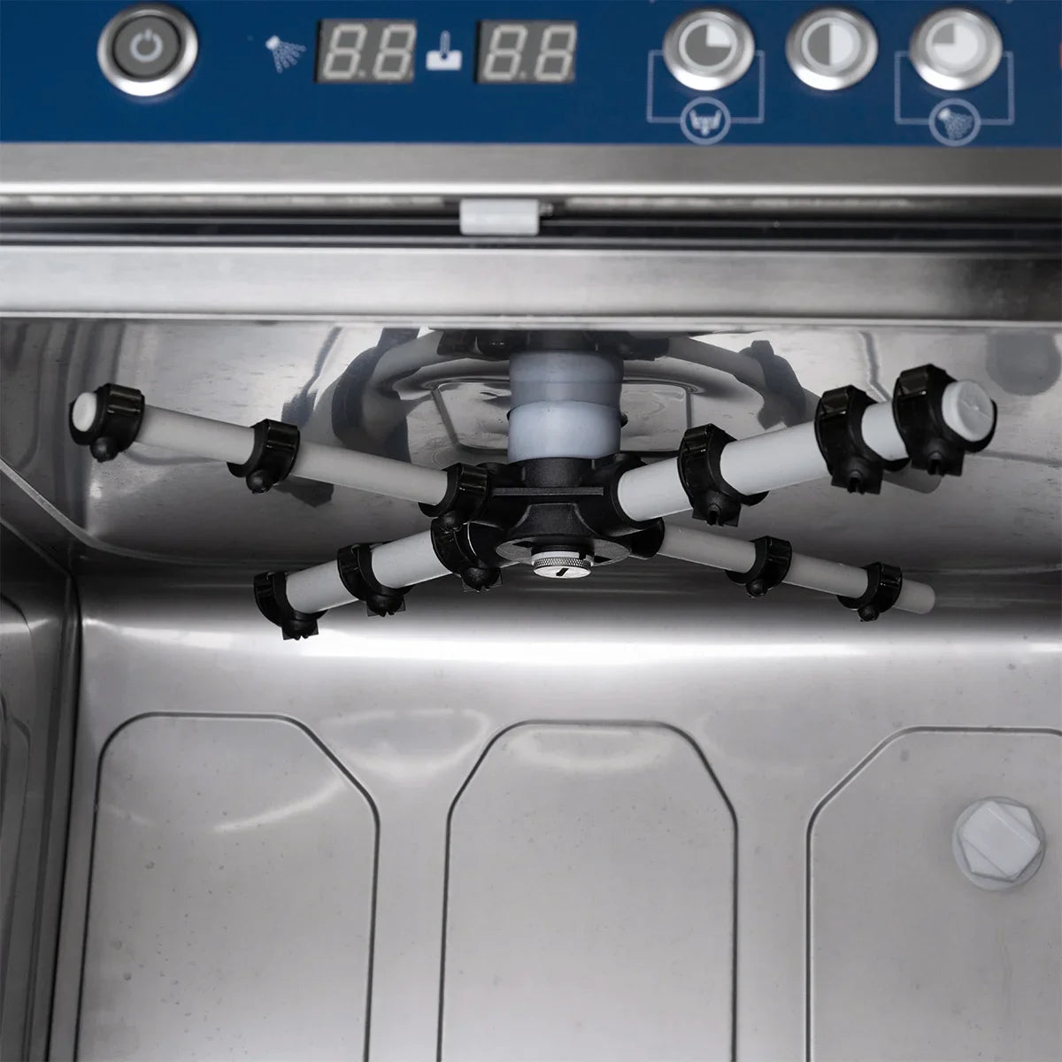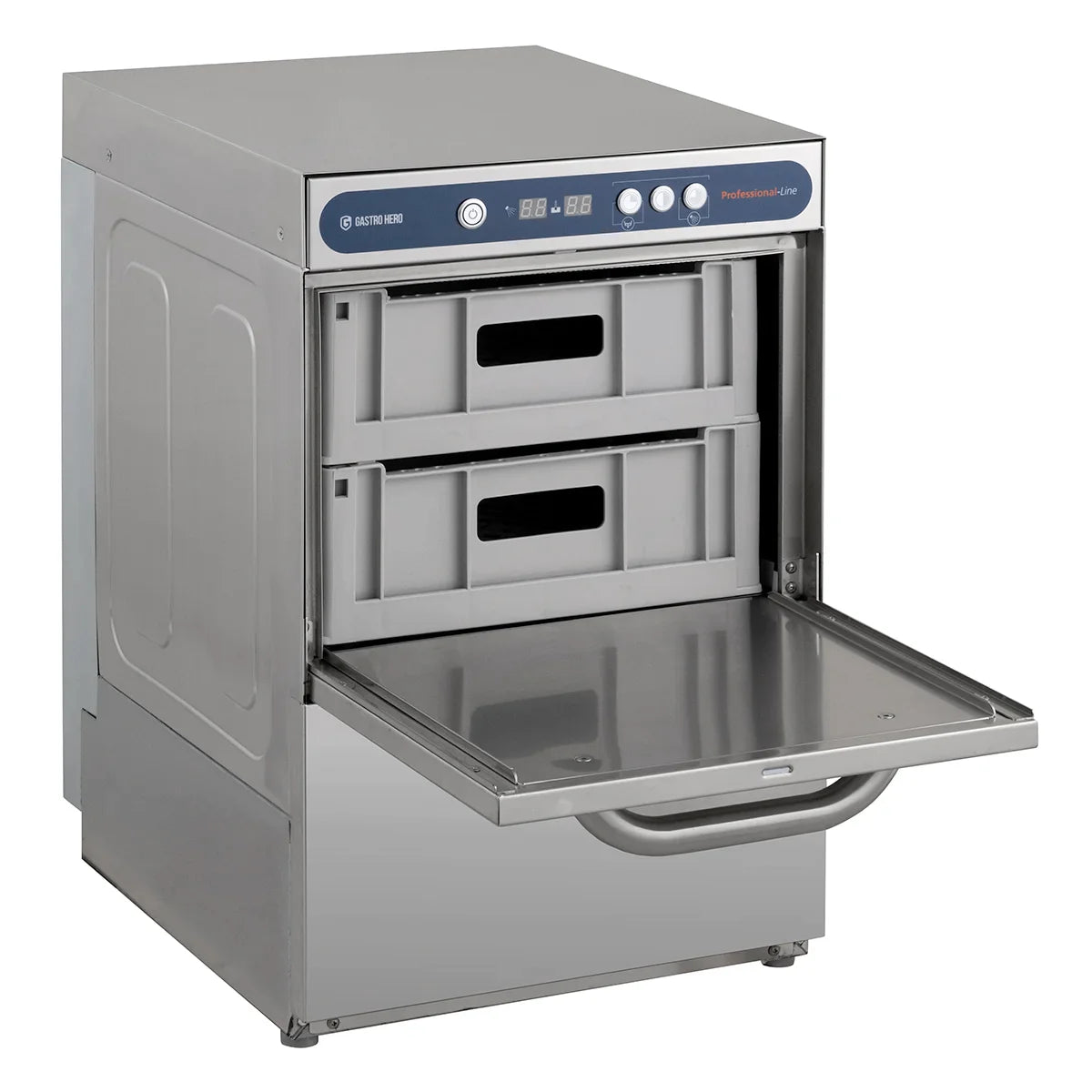 - Mit eingebautem Reiniger- und Klarspüldosierer sowie einer Laugenpumpe