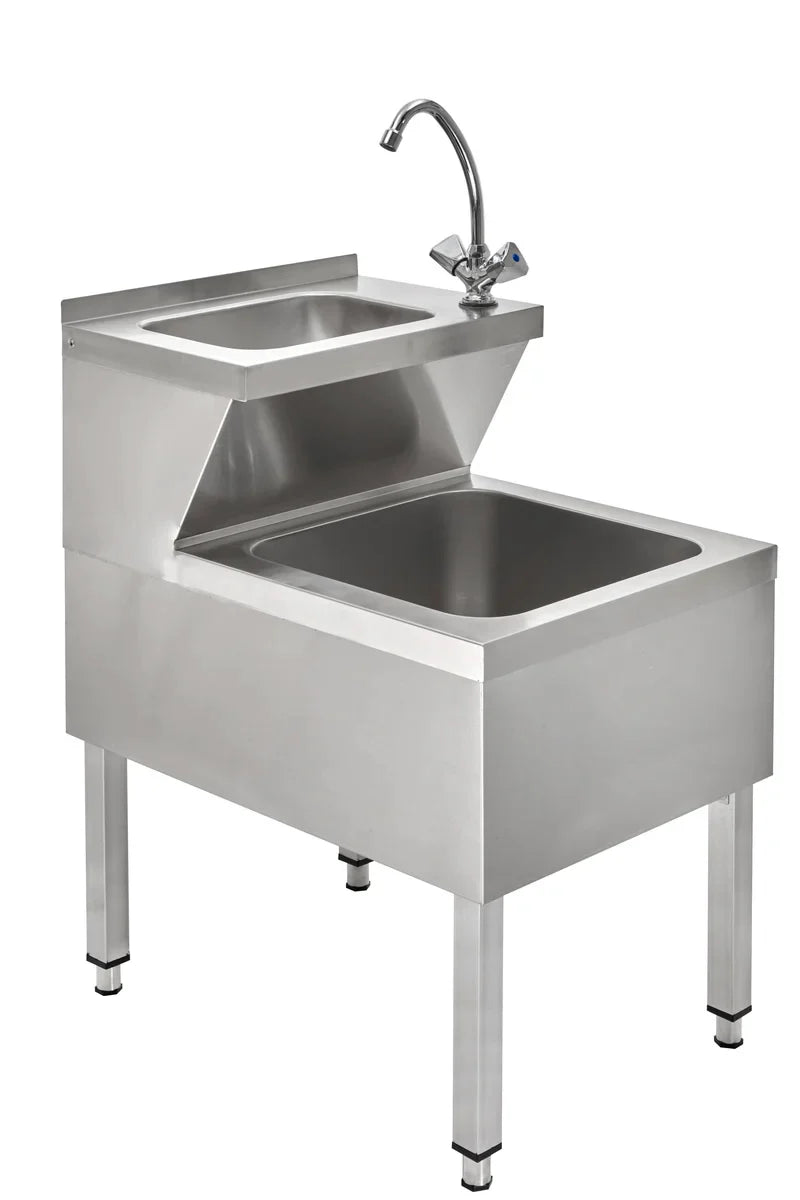 GastroHero Handwasch-Ausgussbeckenkombination Basic 2, Kalt- und Warmwasserhahn