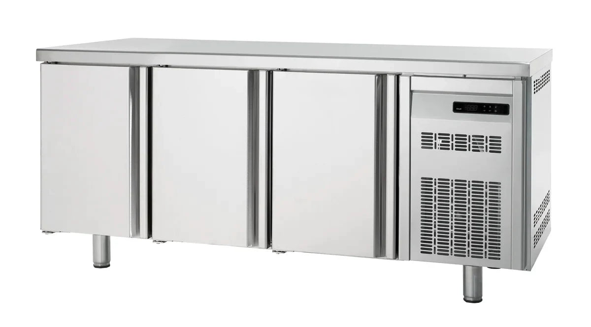 Unsere Kühltische aus der Premium-Serie überzeugen mit modernem Design, hoher Funktionalität, Langlebigkeit sowie einer hochwertigen Verarbeitung. Dank des idealen Temperaturbereichs von -2°C bis +8°C können Sie Ihre Lebensmittel optimal gekühlt lagern. Das hier verwendete Temperatur-Messsystem vemeidet zu häufiges Anspringen des Aggregats und arbeitet daher besonders energiesparsam und umweltschonend. Sobald die Produkte im Inneren die gewünschte Temperatur erreicht haben, sinkt der Energieverbrauch beträchtlich. Unsere Premium-Kühltische bieten eine perfekte Mischung zwischen Arbeitsfläche und Lagerfläche.