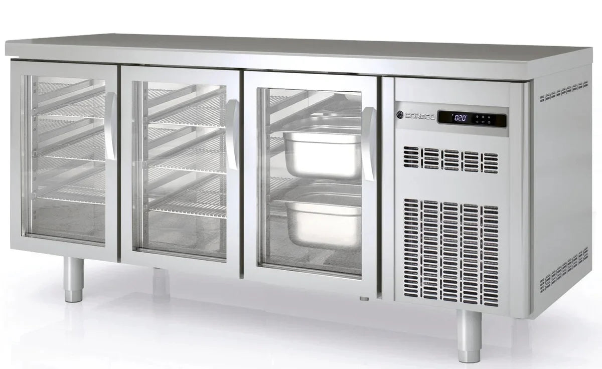 Unsere Kühltische aus der Premium-Serie überzeugen mit modernem Design, hoher Funktionalität, Langlebigkeit sowie einer hochwertigen Verarbeitung. Dank des idealen Temperaturbereichs von -2°C bis +8°C können Sie Ihre Lebensmittel optimal gekühlt lagern. Das hier verwendete Temperatur-Messsystem vemeidet zu häufiges Anspringen des Aggregats und arbeitet daher besonders energiesparsam und umweltschonend. Sobald die Produkte im Inneren die gewünschte Temperatur erreicht haben, sinkt der Energieverbrauch beträchtlich. Unsere Premium-Kühltische bieten eine perfekte Mischung zwischen Arbeitsfläche und Lagerfläche.