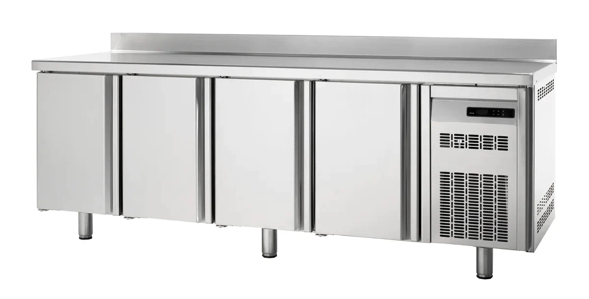 Unsere Kühltische aus der Premium-Serie überzeugen mit modernem Design, hoher Funktionalität, Langlebigkeit sowie einer hochwertigen Verarbeitung. Dank des idealen Temperaturbereichs von -2°C bis +8°C können Sie Ihre Lebensmittel optimal gekühlt lagern. Das hier verwendete Temperatur-Messsystem vemeidet zu häufiges Anspringen des Aggregats und arbeitet daher besonders energiesparsam und umweltschonend. Sobald die Produkte im Inneren die gewünschte Temperatur erreicht haben, sinkt der Energieverbrauch beträchtlich. Unsere Premium-Kühltische bieten eine perfekte Mischung zwischen Arbeitsfläche und Lagerfläche.