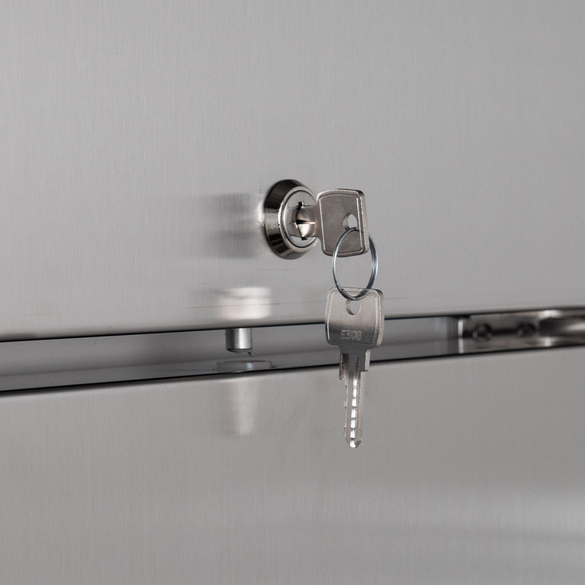 - Volltüren aus Edelstahl mit integriertem Griff und automatischer Rückstellung für perfektes Schließen bei minimaler Temperaturerhöhung