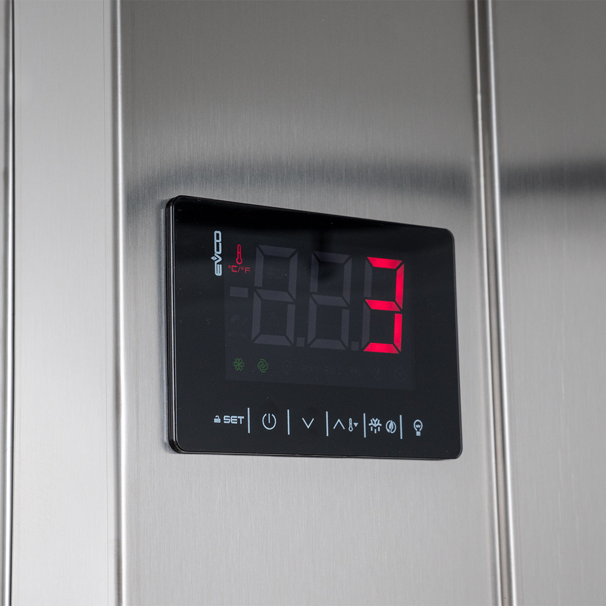 - extra große Touchscreen-Steuerung zur präzisen Temperatureinstellung mit einfach einstellbaren Parametern, Energiesparmodus und HACCP-Alarmsystem
