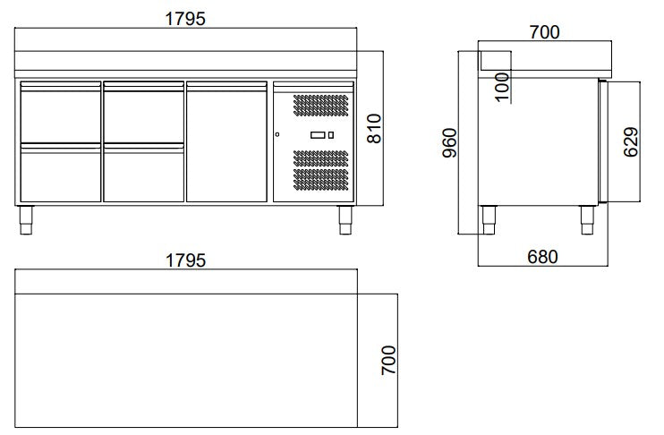 • Arbeitsplatte, Innenraum, Tür, Schubladen und Seitenteile aus hochwertigem Edelstahl